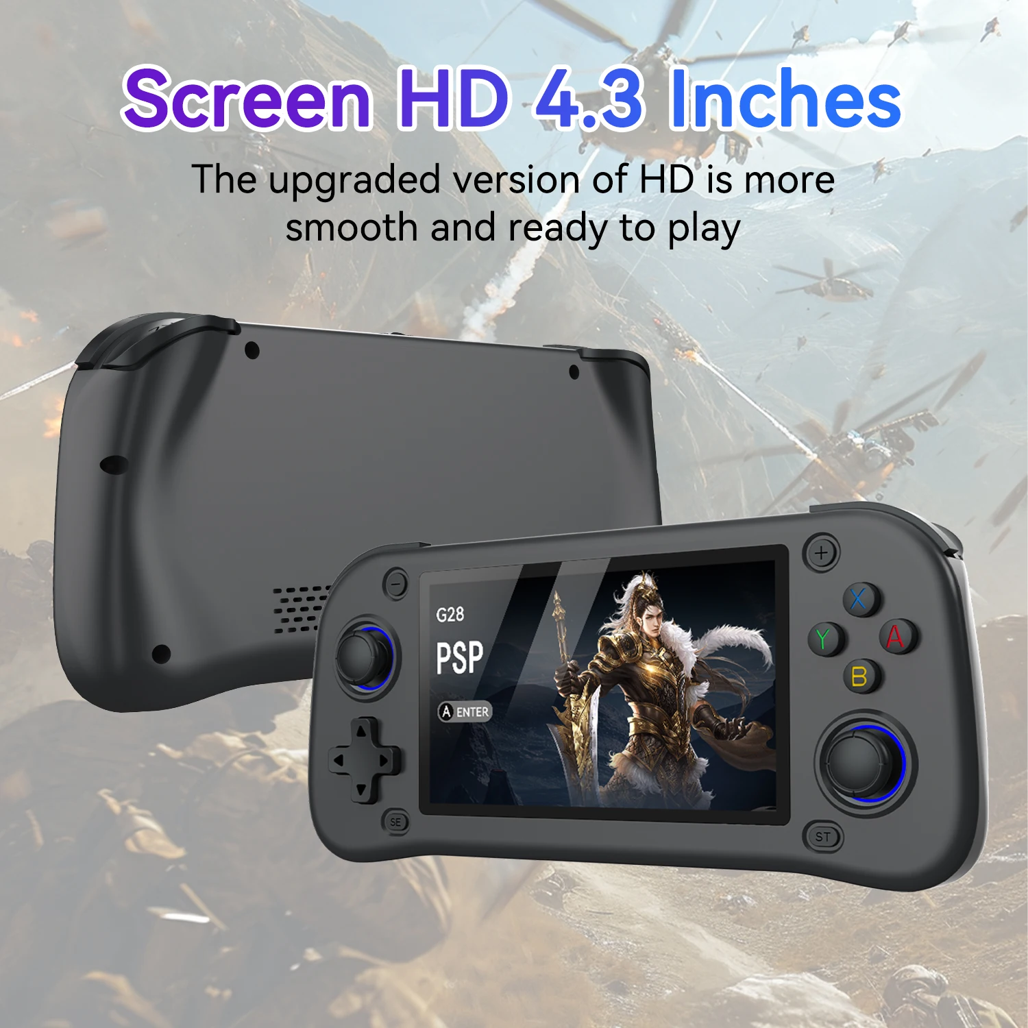 Comprar G28 Retro Video Reproductores de juegos portátiles Reproductor de videojuegos Gamepad Pantalla HD IPS de 4,3 pulgadas 64G 15000+ Juegos de bolsillo