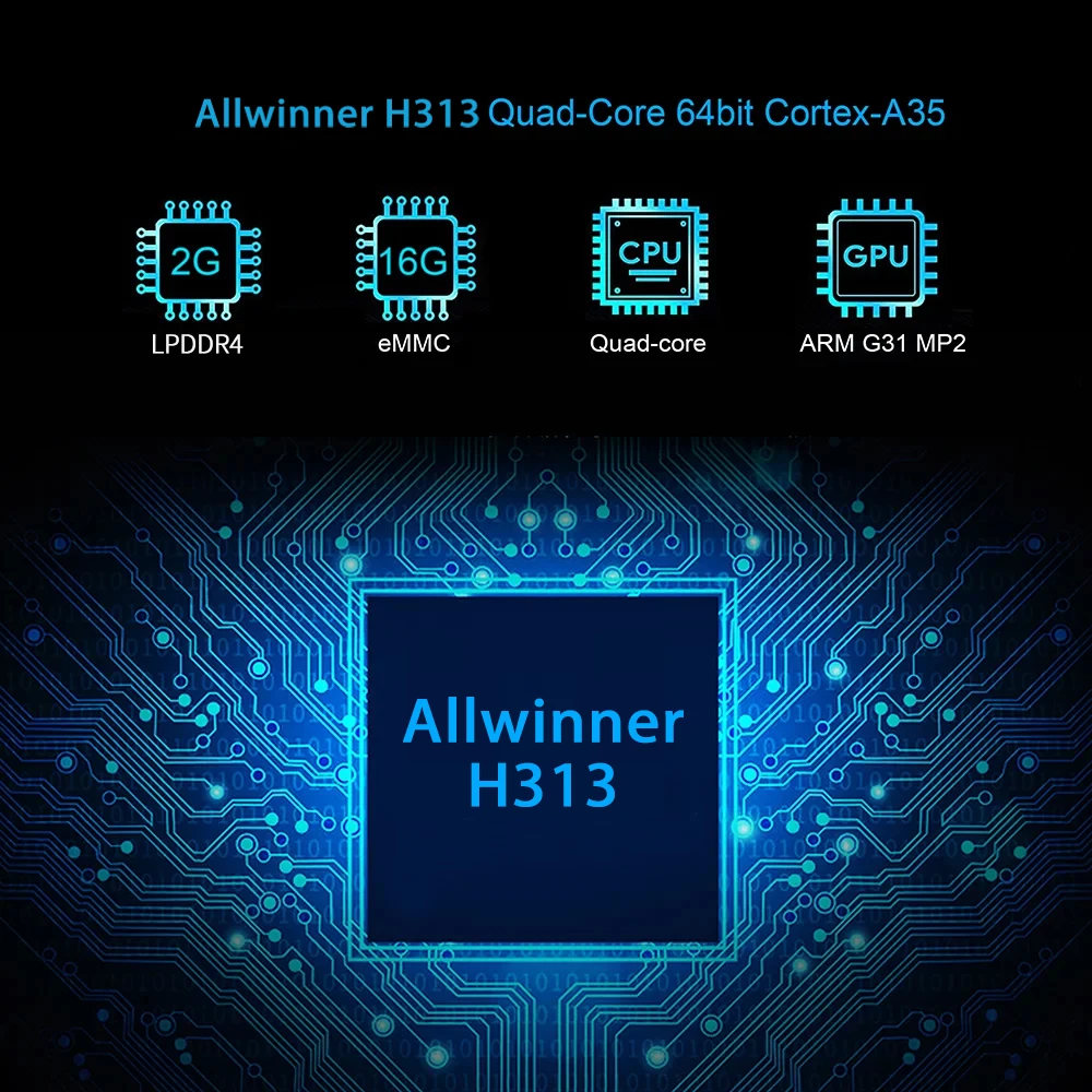 Equipado con chip de alto rendimiento-Allwinner H313.
