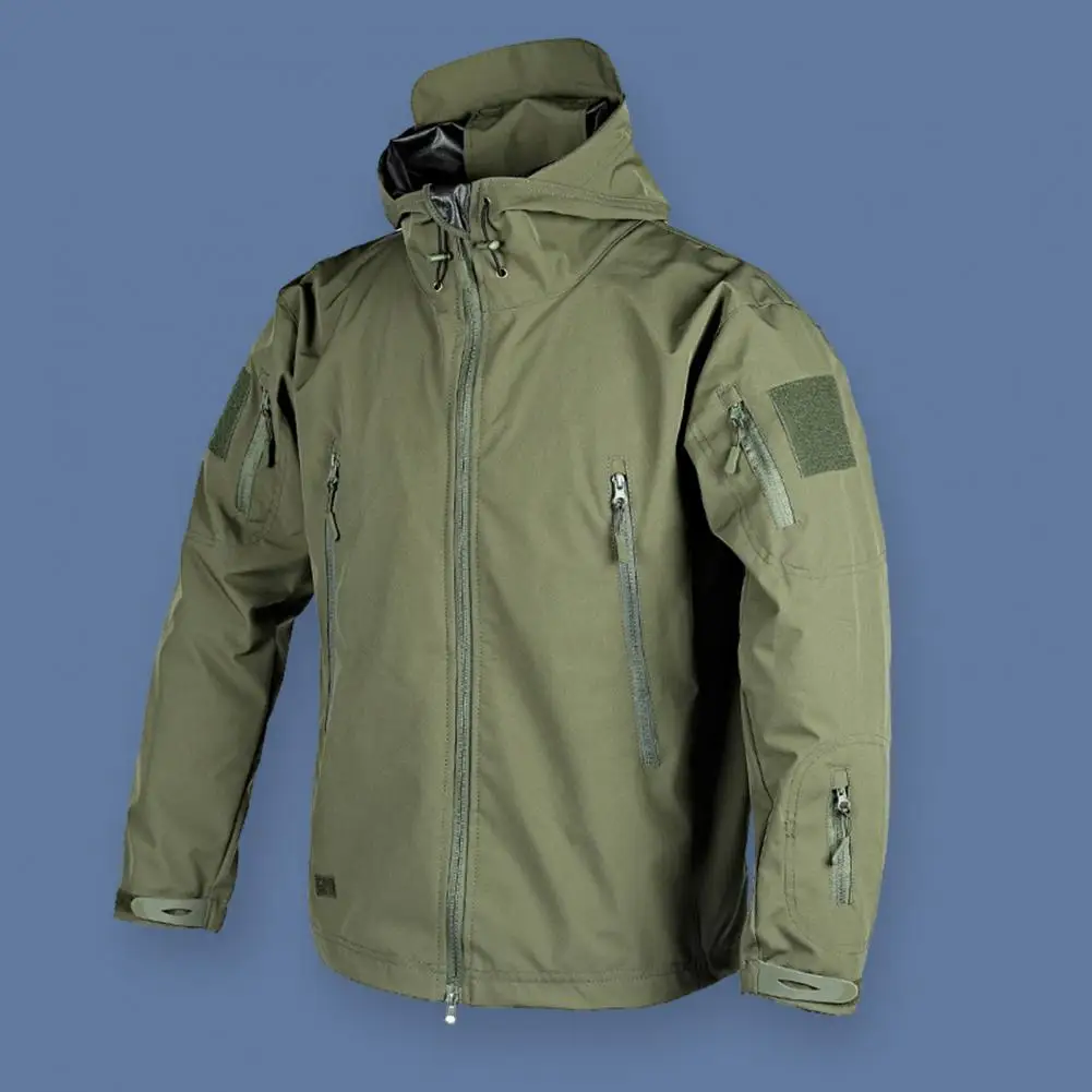 Capucha desmontable a prueba de viento con hebilla retráctil para un aspecto personalizable.