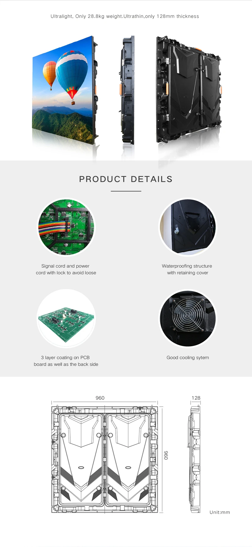 MOQ:1 Pantalla de aluminio para exteriores P4 de 960x960mm de 1/2 ".
