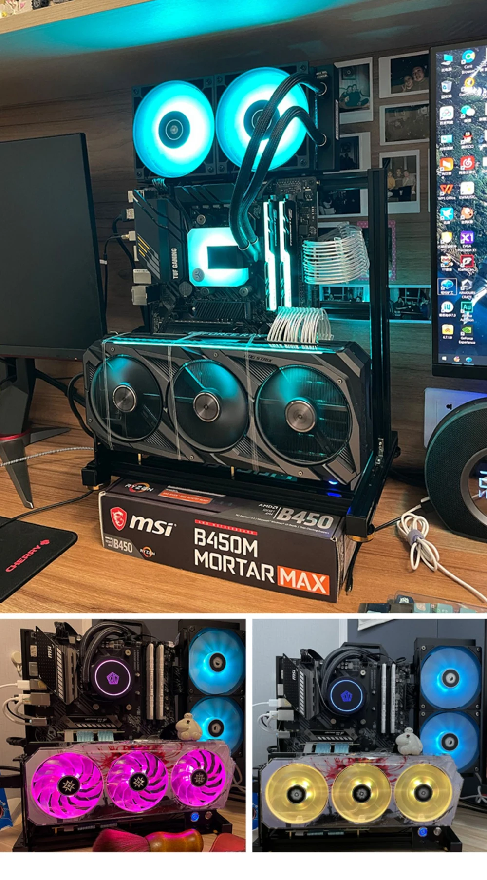 El marco del estuche de la PC admite la instalación horizontal de tarjetas gráficas de forma predeterminada.Si necesita instalar tarjetas gráficas verticalmente, debe comprar cables de extensión adicionales