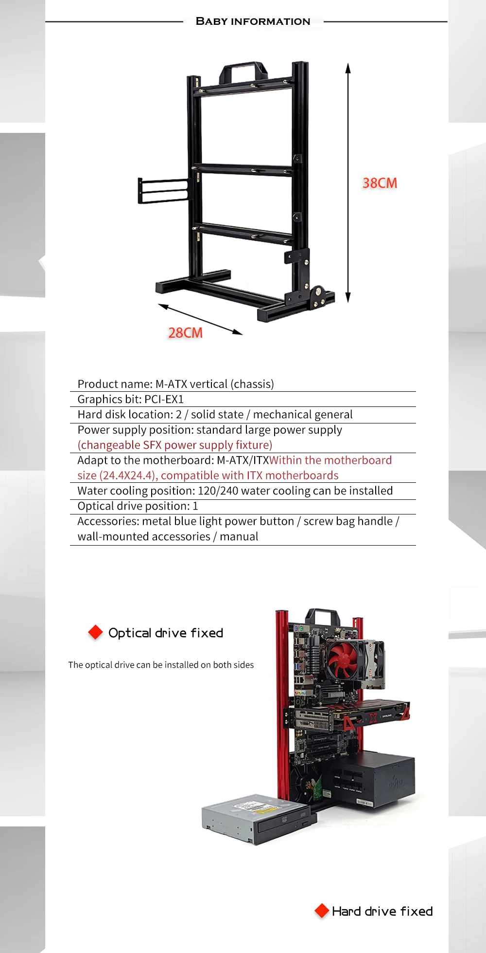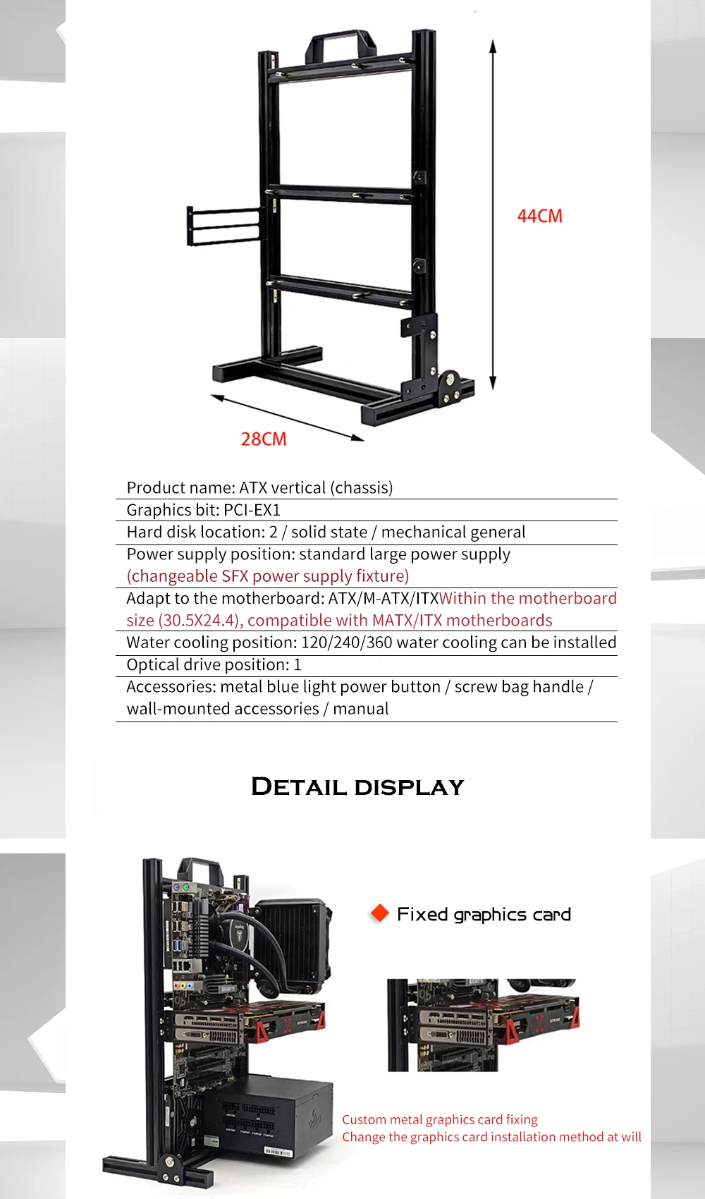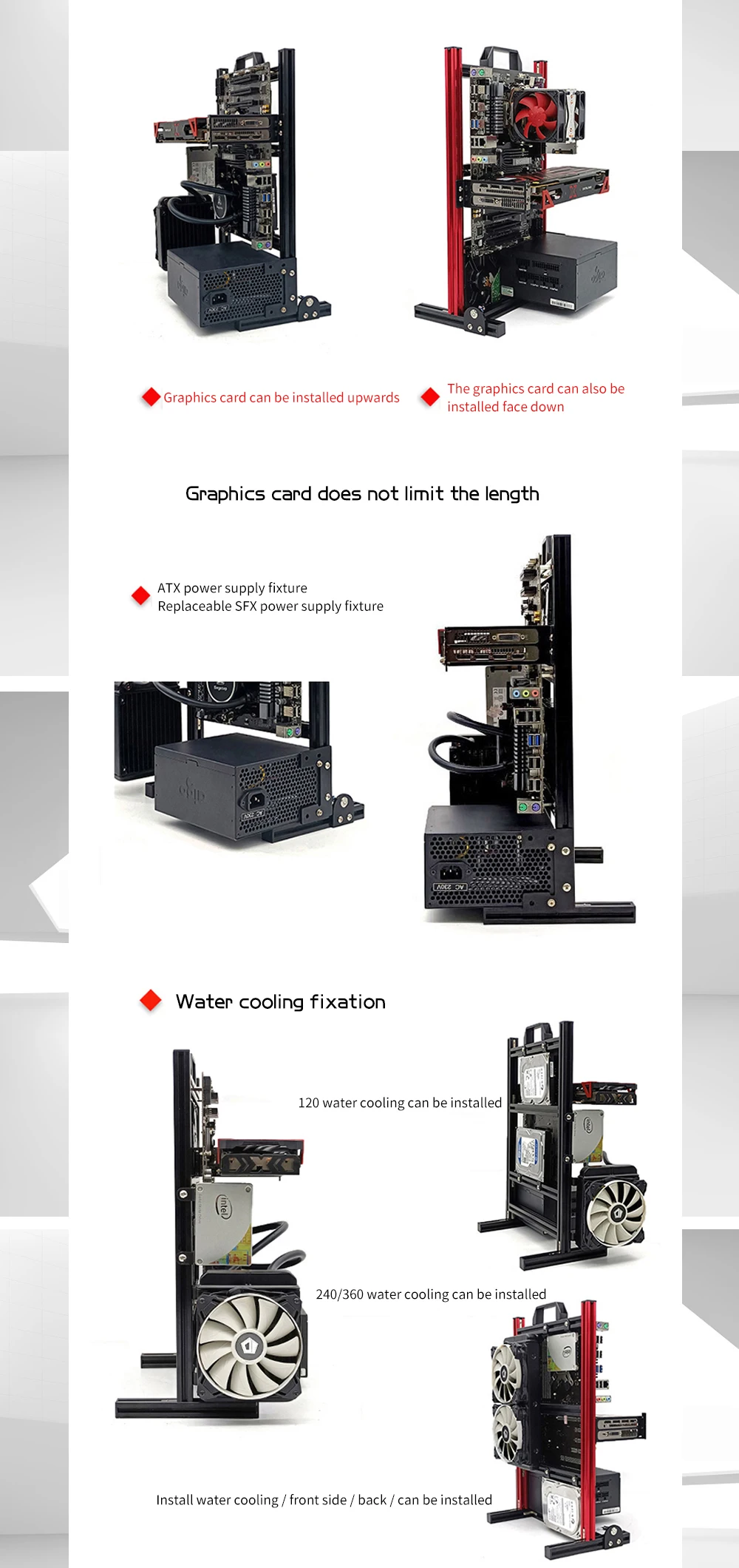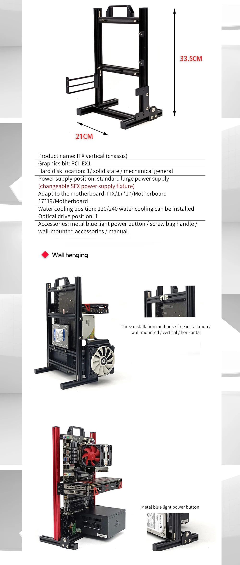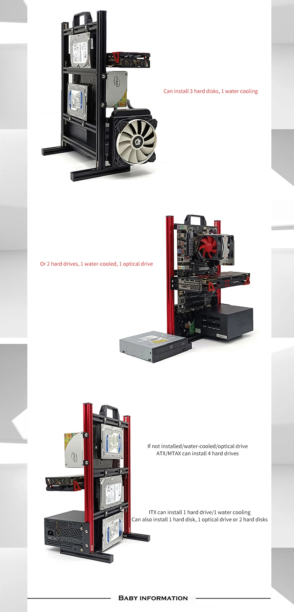 Gabinete para jugadores DIY, chasis ITX MATX ATX, caja de ordenador, estante de marco abierto, gabinete para PC de juegos de escritorio con refrigeración por agua MOD