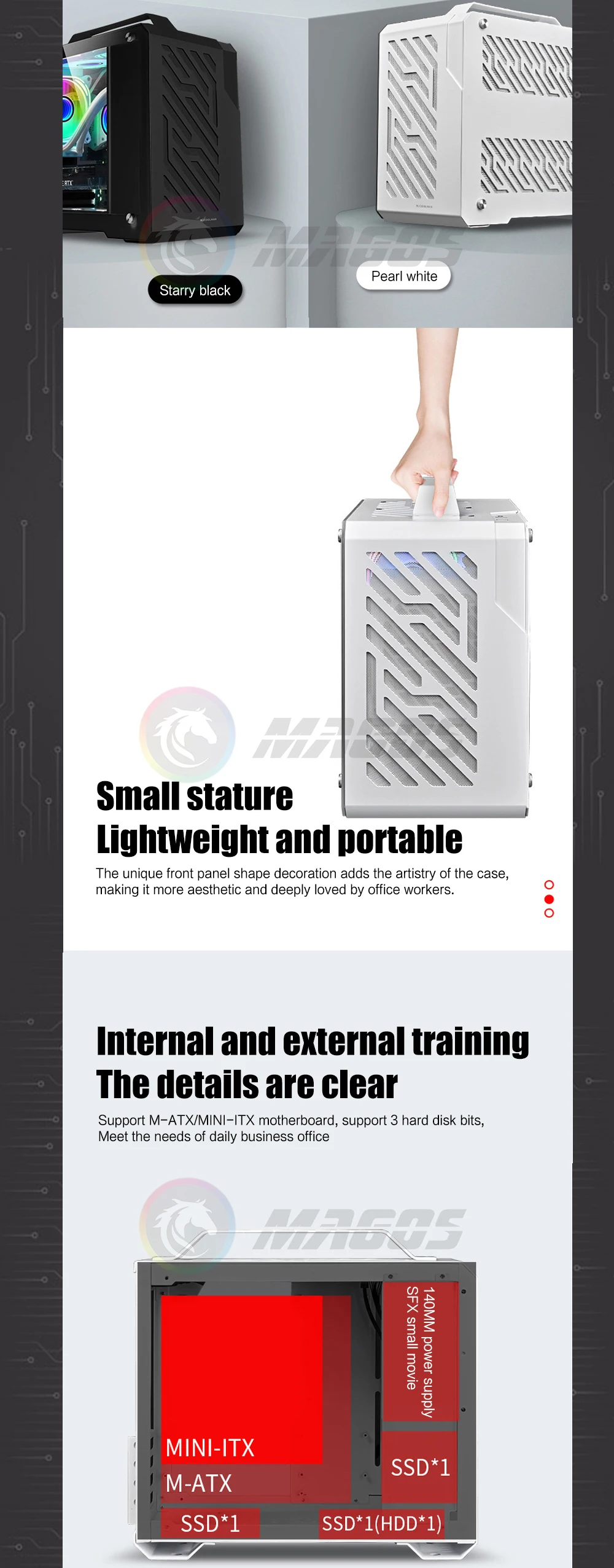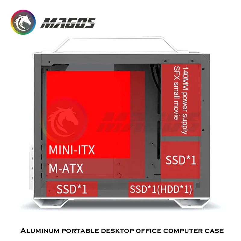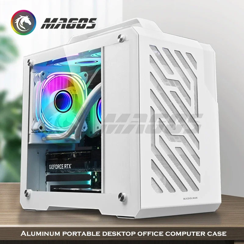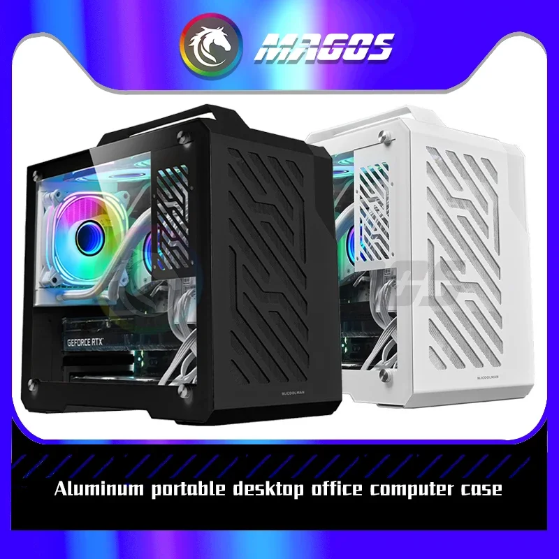 Gabinete para jugadores, elemento de aluminio portátil ITX/MATX, soporte lateral de vidrio templado, tarjetas de 330mm/Mini estuche de refrigeración por agua 240 AIO