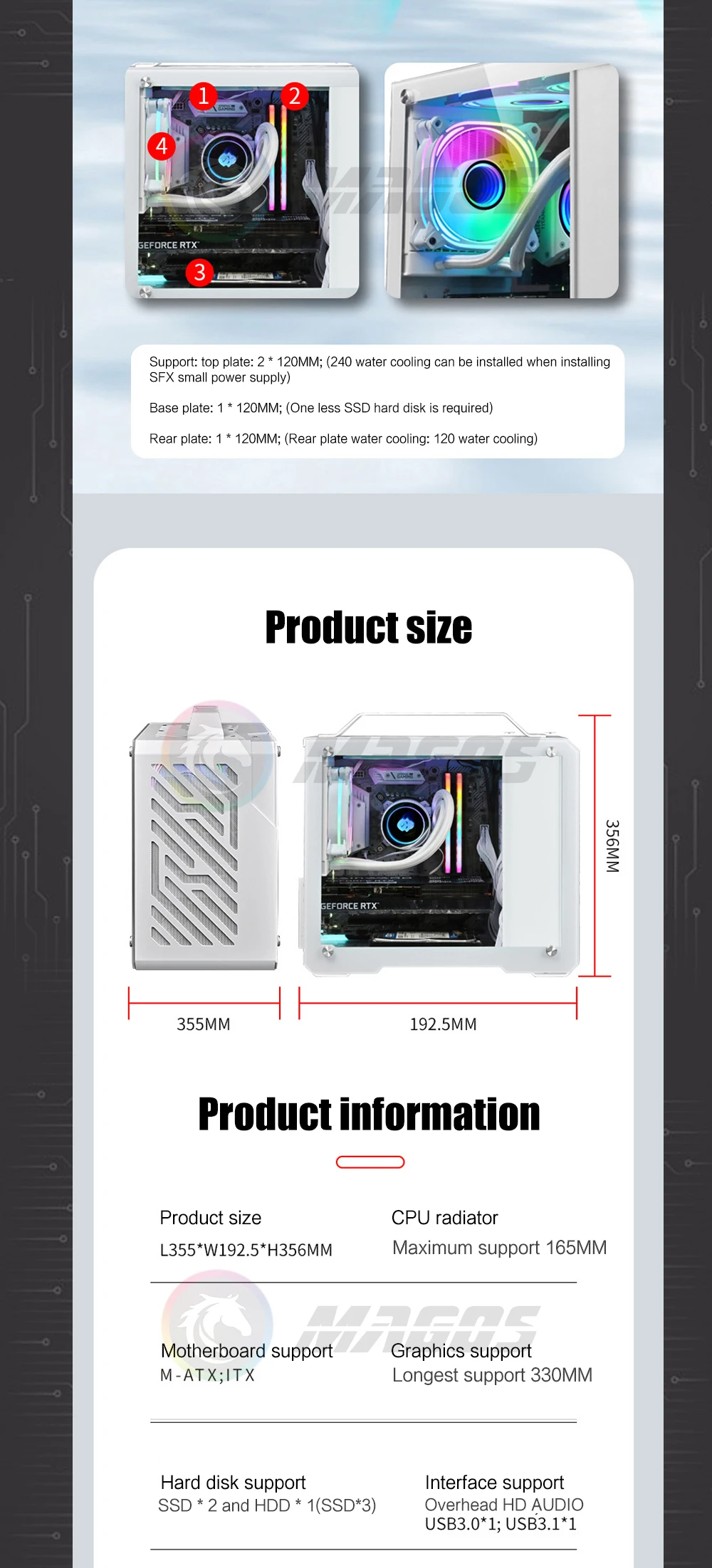 Comprar Gabinete de PC para Gamer, carcasa de ordenador tipo MATX, vidrio lateral, portátil, soporte 240 AIO Cooler 30S, tarjeta gráfica