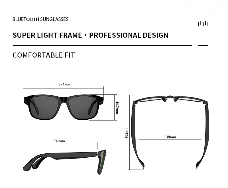 Gafas inteligentes Bluetooth 5.3 Auriculares inalámbricos Auriculares de sol Auriculares UV400 Polarizados Tacto Contrl Llamar Música Anteojos anti-azul