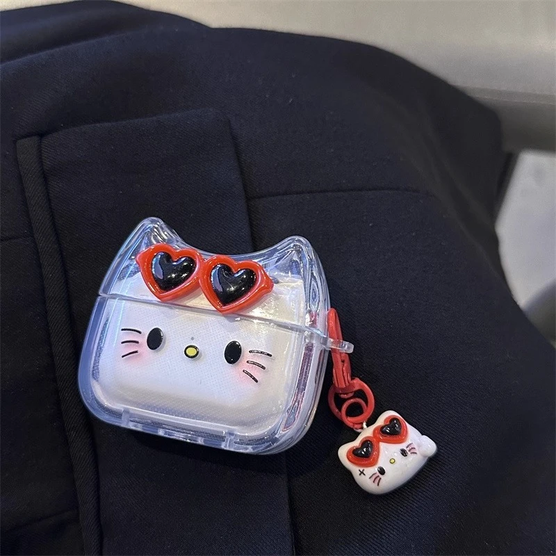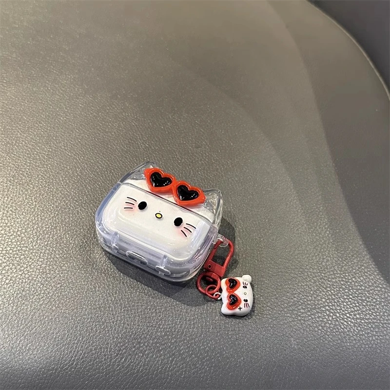 Gafas Kitty Cat funda para auriculares para AirPods 4 (2024) Airpod Pro 1 2 3 auriculares Bluetooth caja de carga cubierta protectora para auriculares