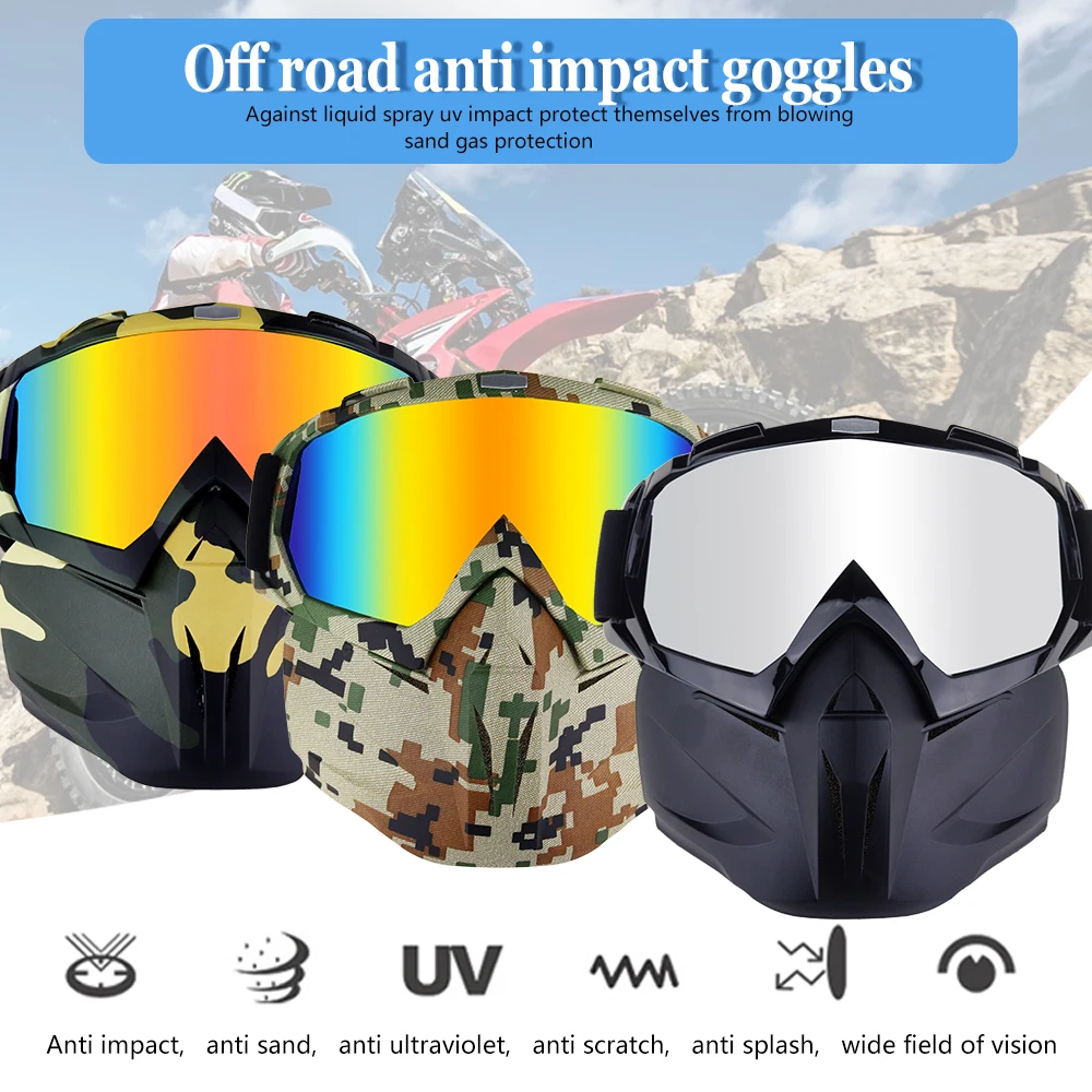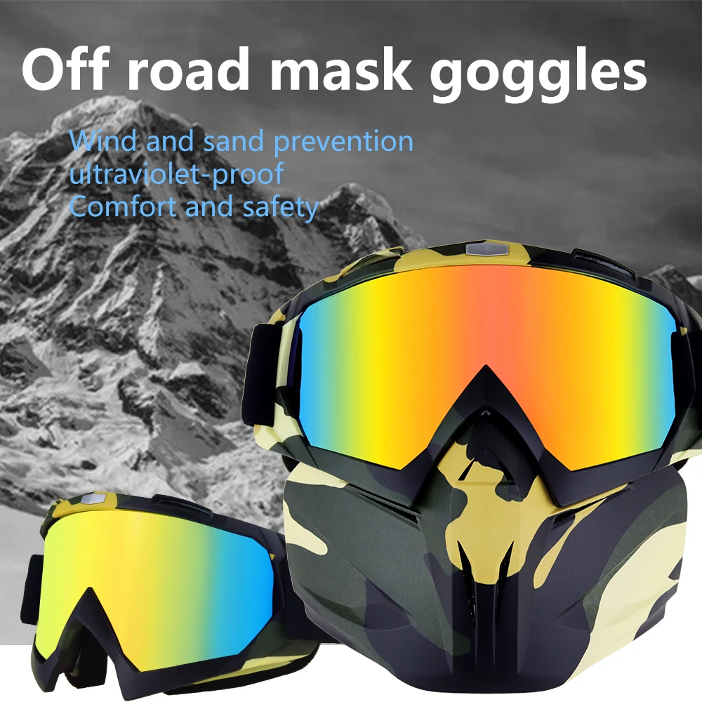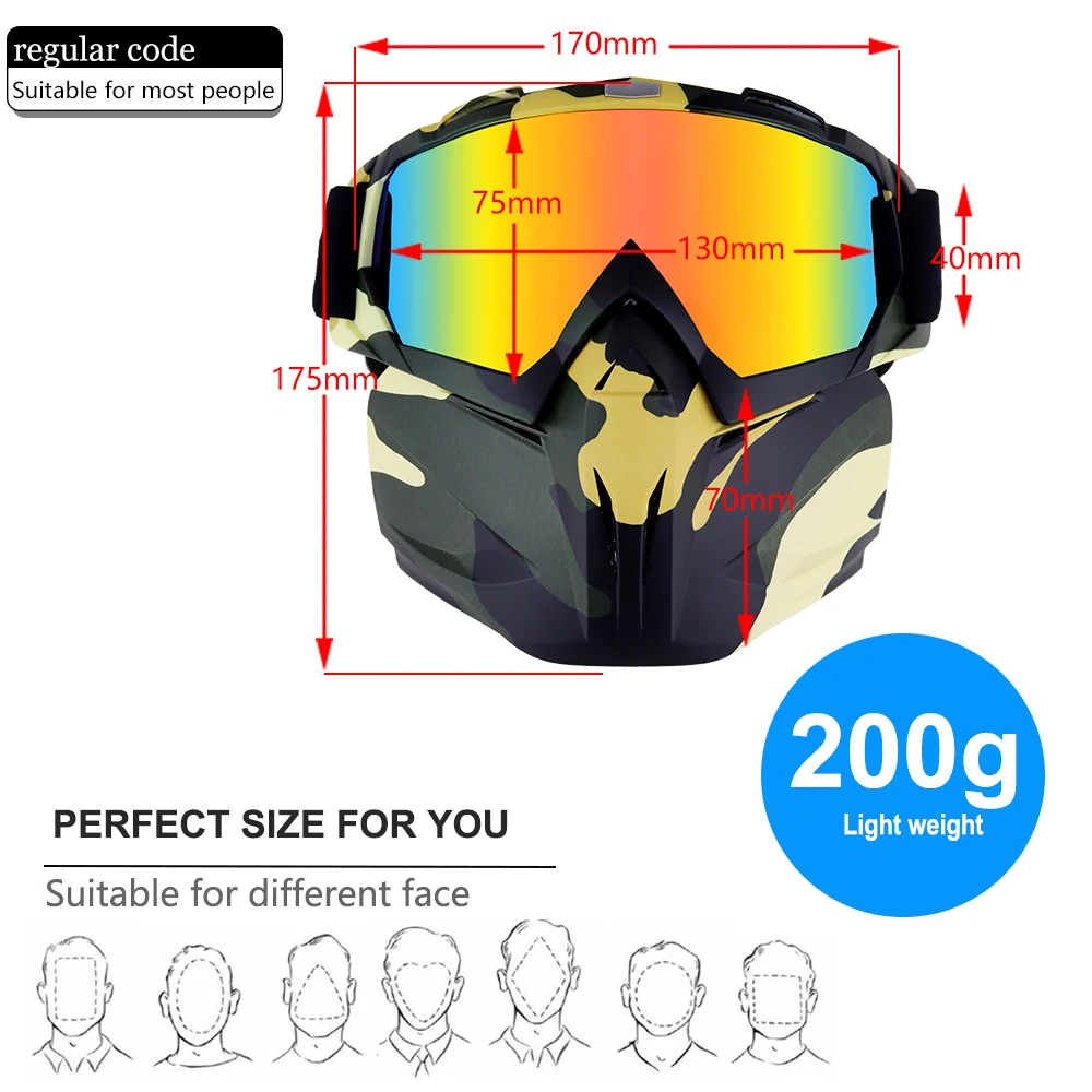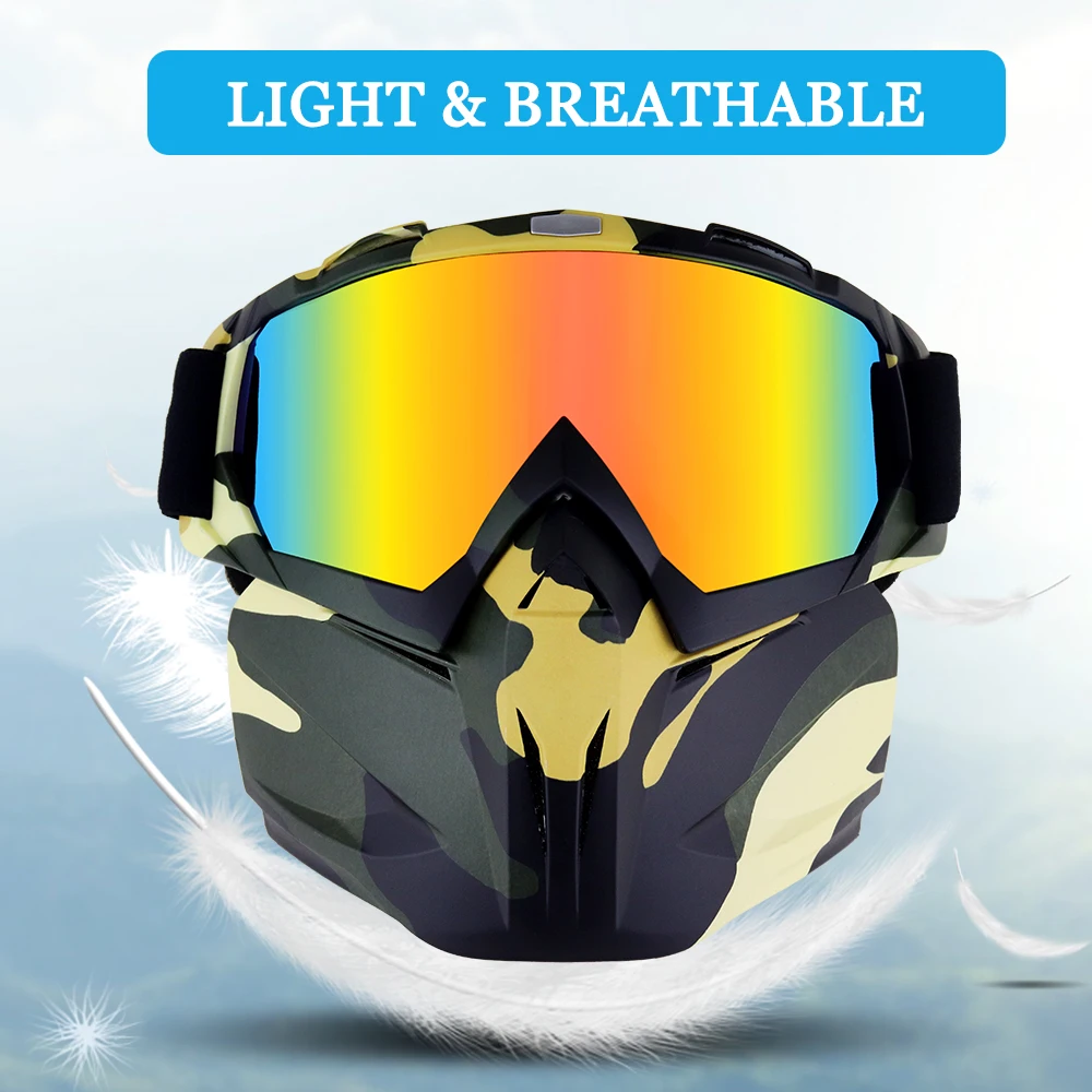 【Máscara desmontable a prueba de viento y polvo】Las gafas de moto con máscara desmontable no solo aumentan el área de protección, sino que también protegen mejor contra el viento y el polvo, e incluso ayudan a prevenir la niebla. Y las gafas se pueden usar por separado según sea necesario.