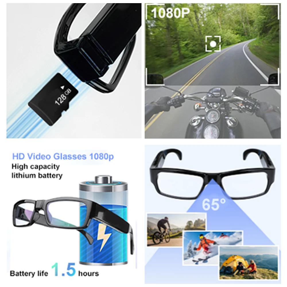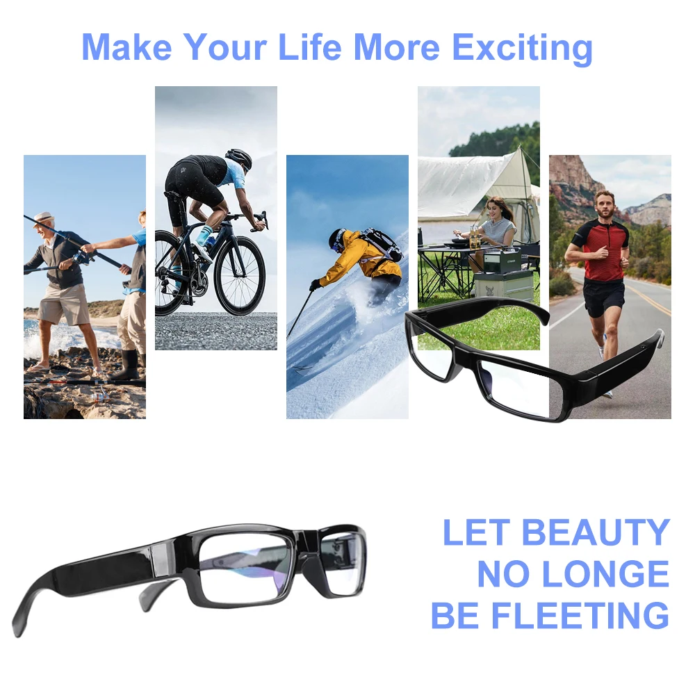 Comprar Gafas portátiles 1080P HD para deportes al aire libre, para exteriores, ciclismo, senderismo y viajes, etc.