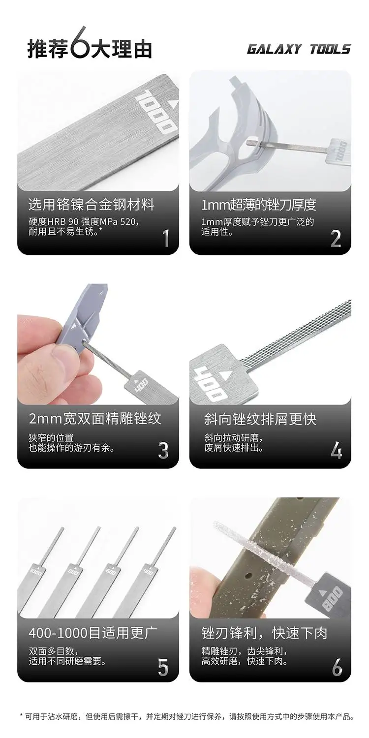 GALAXY Tools-Lima de sarga de acero inoxidable T05F05, herramientas de construcción de modelos de ensamblaje de 1mm de espesor para fabricación de Gundam, bricolaje