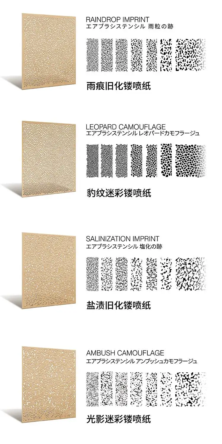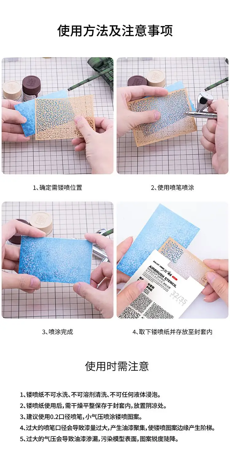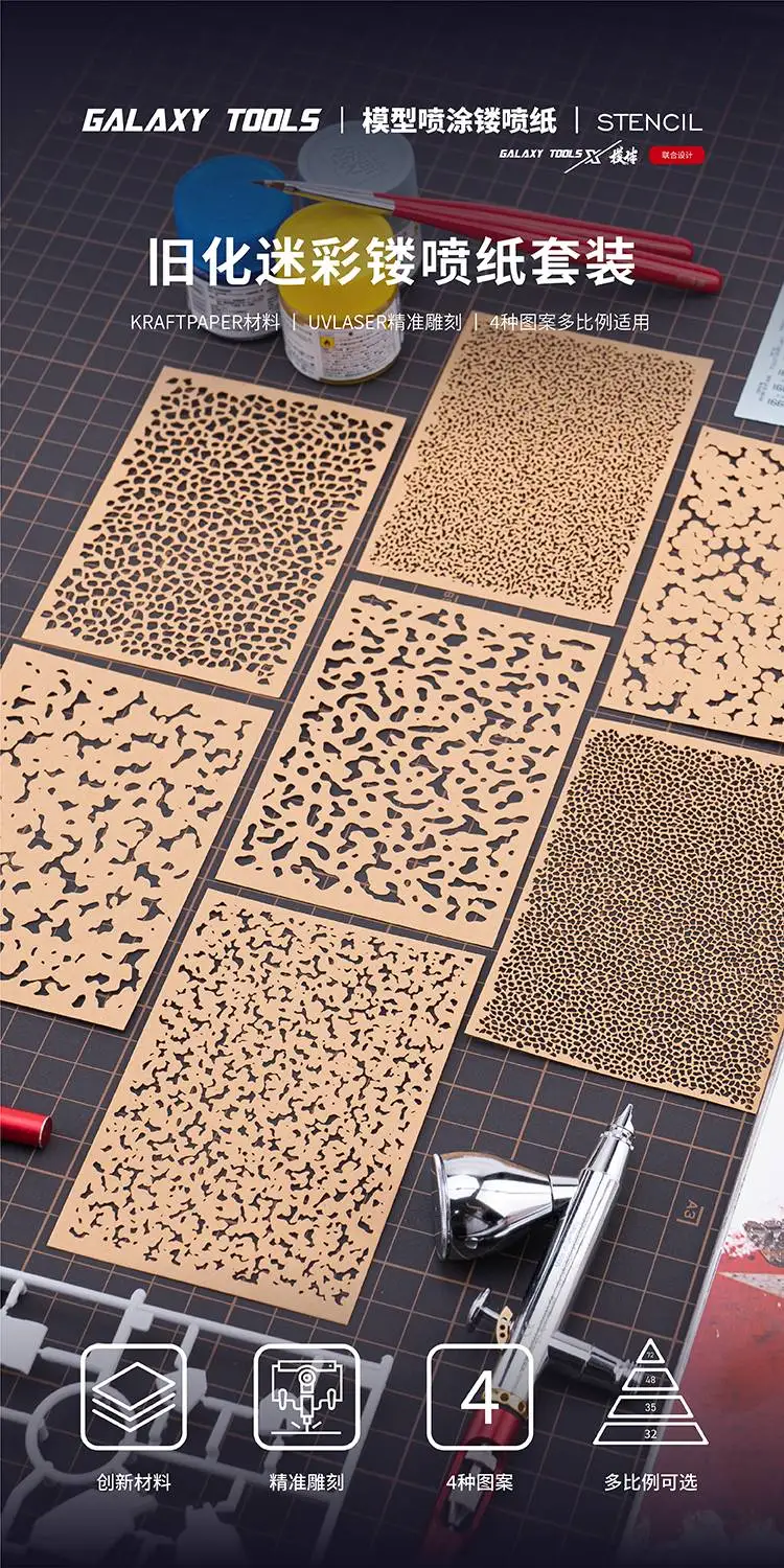 Comprar Galaxy Tools-Plantilla de aerógrafo para L00004-L00011, Impresión de gota de lluvia, juego de papel en aerosol de camuflaje para modelo Gundam, Hobby, bricolaje, 4 Uds.
