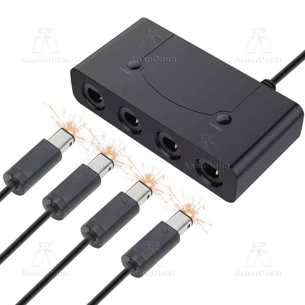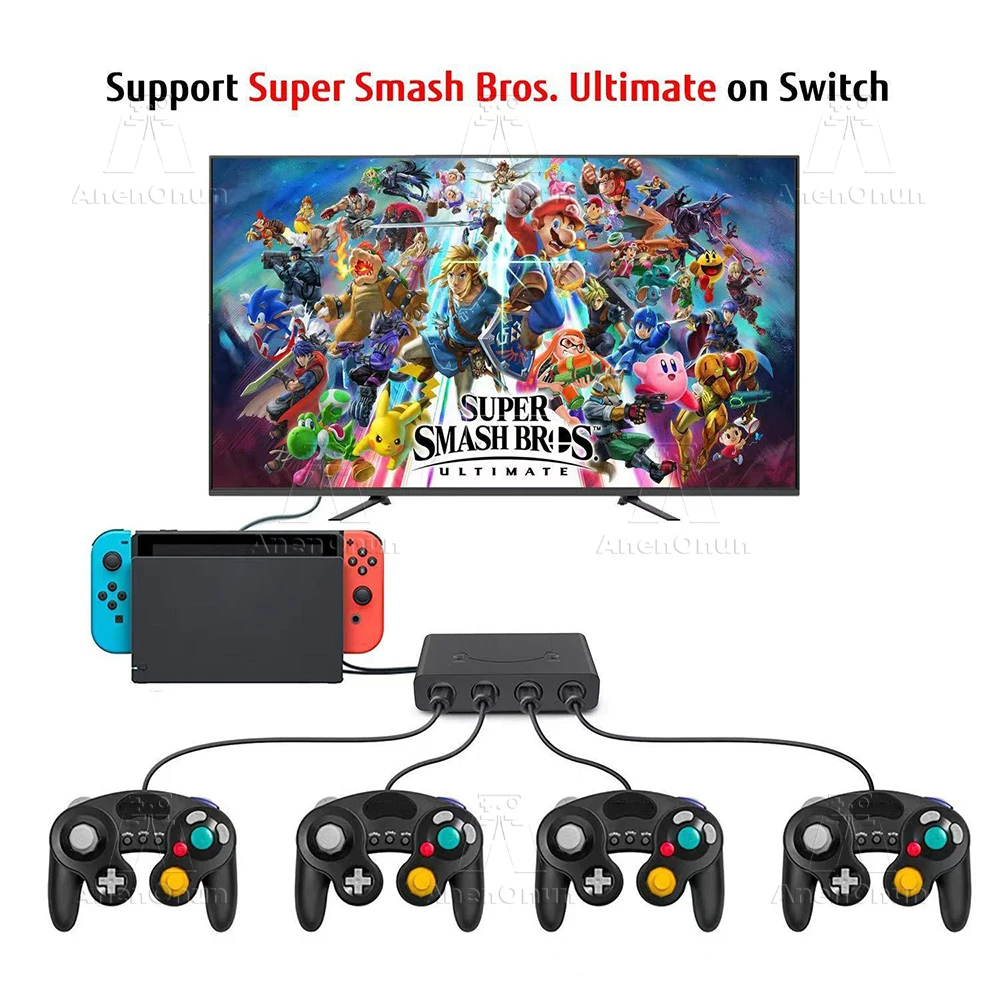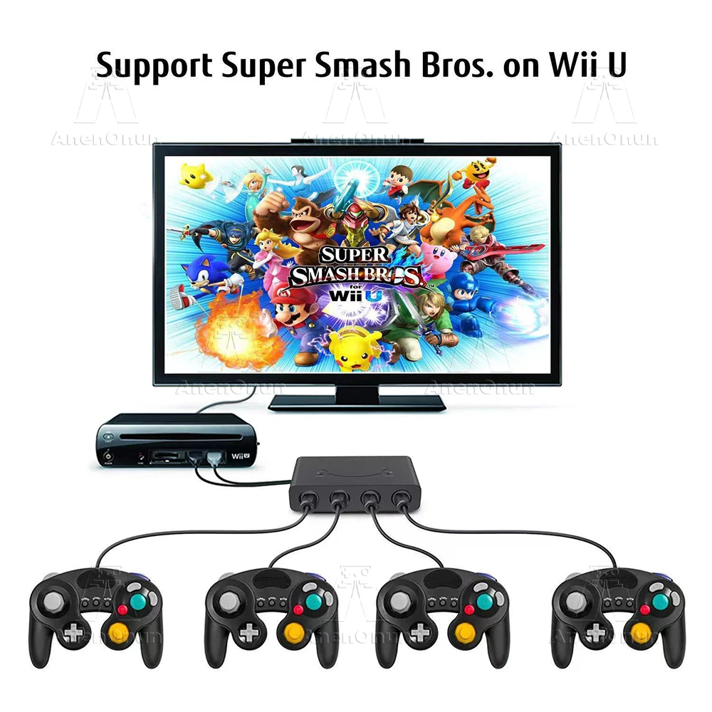 Comprar Gamecube adaptador de controlador Compatible con Switch/Wii U/PC, Plug and Play, 4 puertos, alta calidad, cable USB, NGC, convertidor de Gamepad