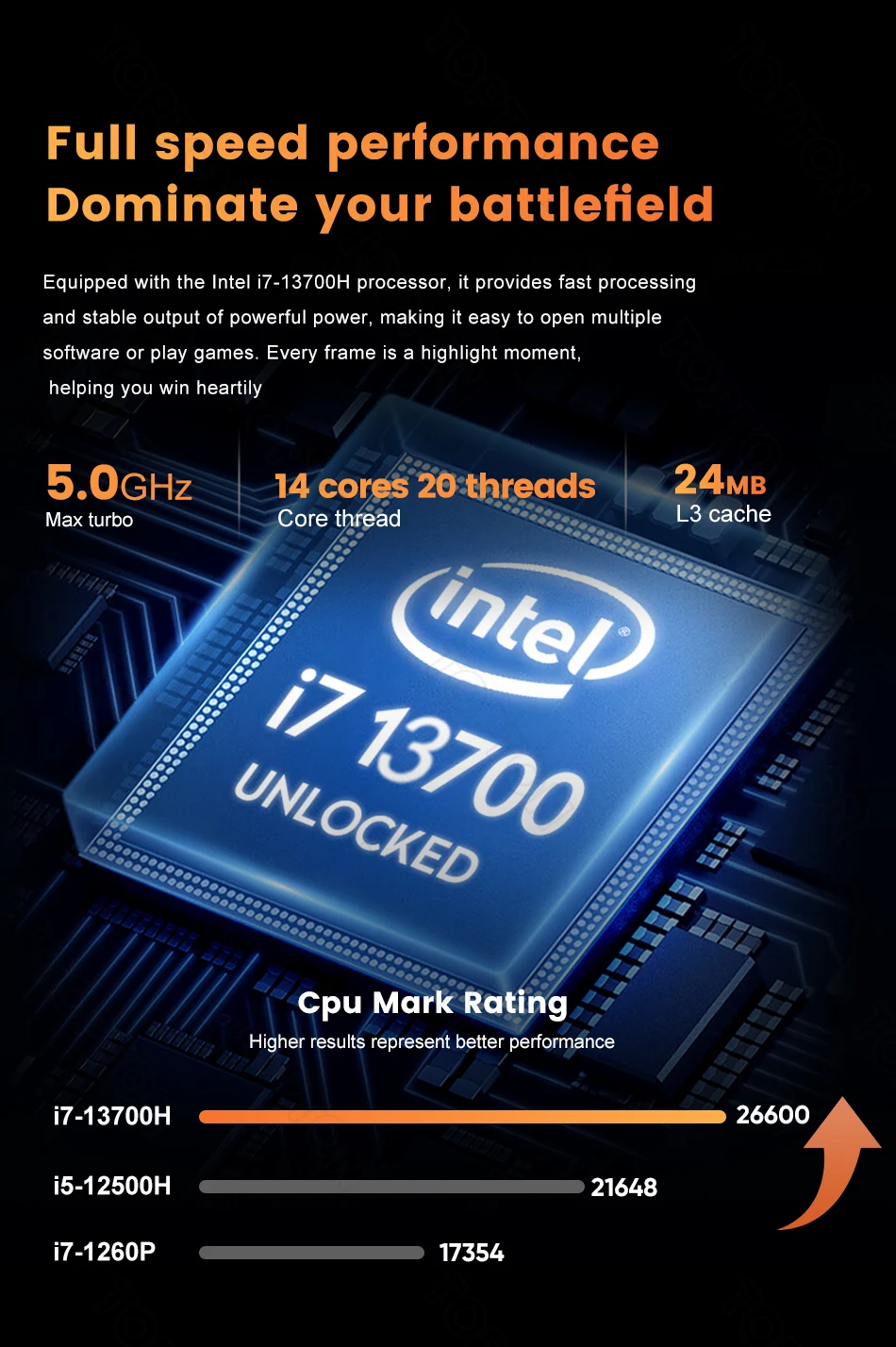 CPU: Intel Core i7-13700H 14 núcleos 20 hilos/i7-13620H 10 núcleos 16 hilos