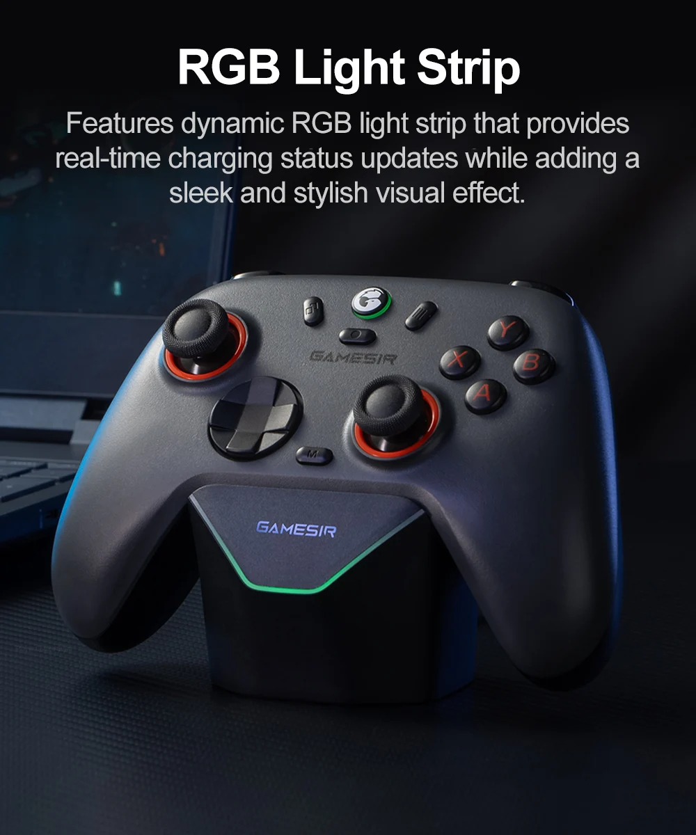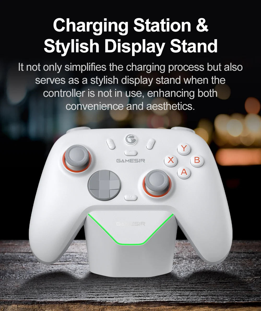 no solo simplifica el proceso de carga, sino que también sirve como un elegante soporte de exhibición cuando el controlador no está en uso, mejorando tanto la comodidad como la estética.