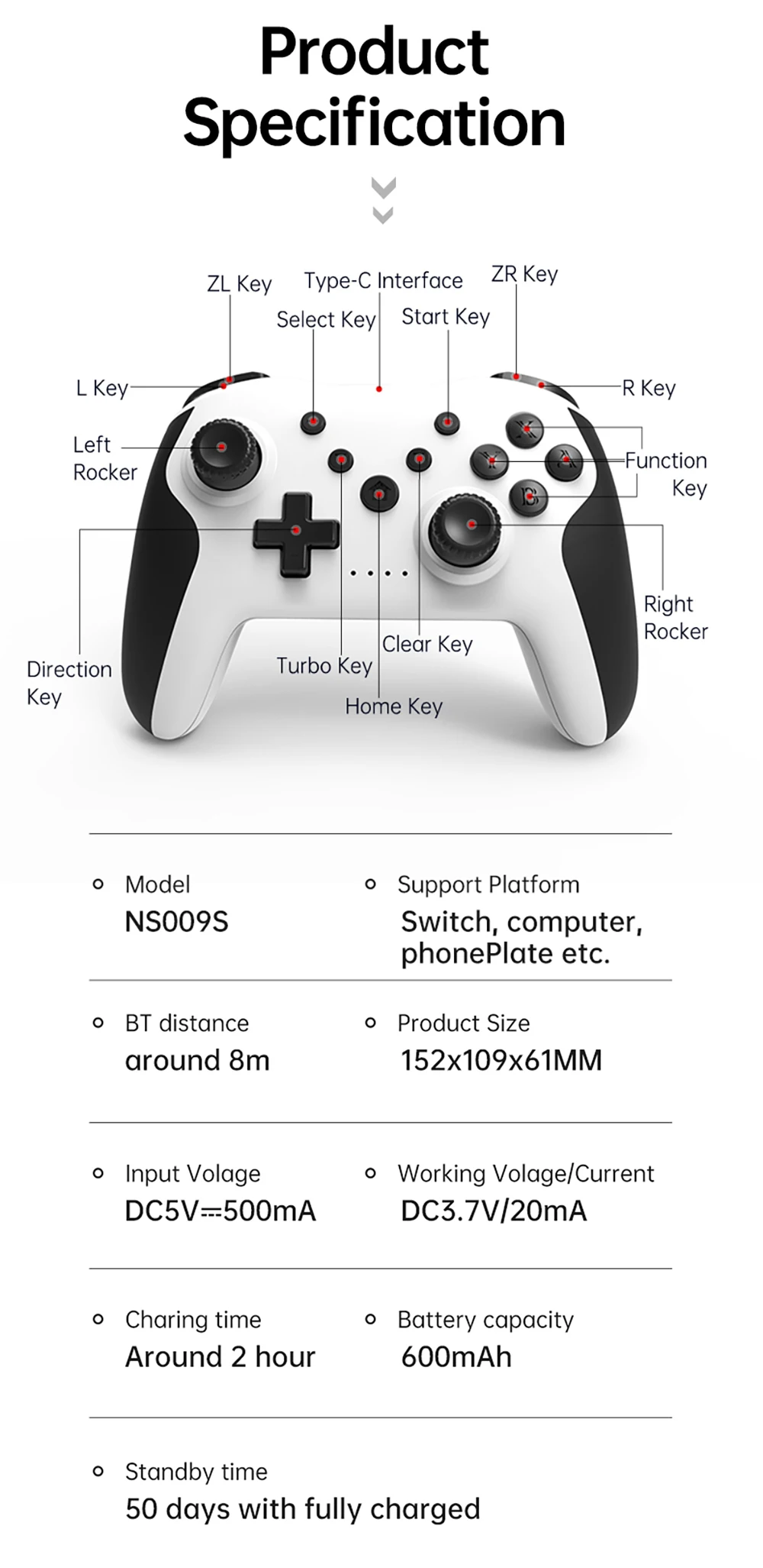Comprar GAMINJA controlador inalámbrico BT para Nintendo Switch Pro Smartphone PC TV Box tableta PS3 Tesla Gamepad PC Joystick 2,4G controlador