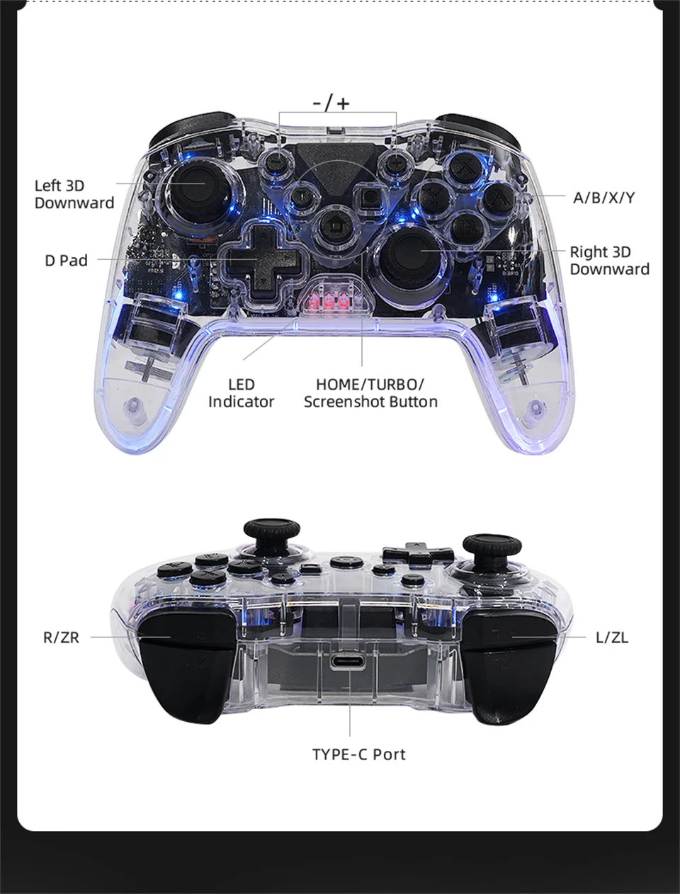7. Los joysticks izquierdo y derecho pueden ser operados 360 ° con precisión, ayudando a los jugadores a lograr operaciones difíciles como el ajuste fino y el objetivo;