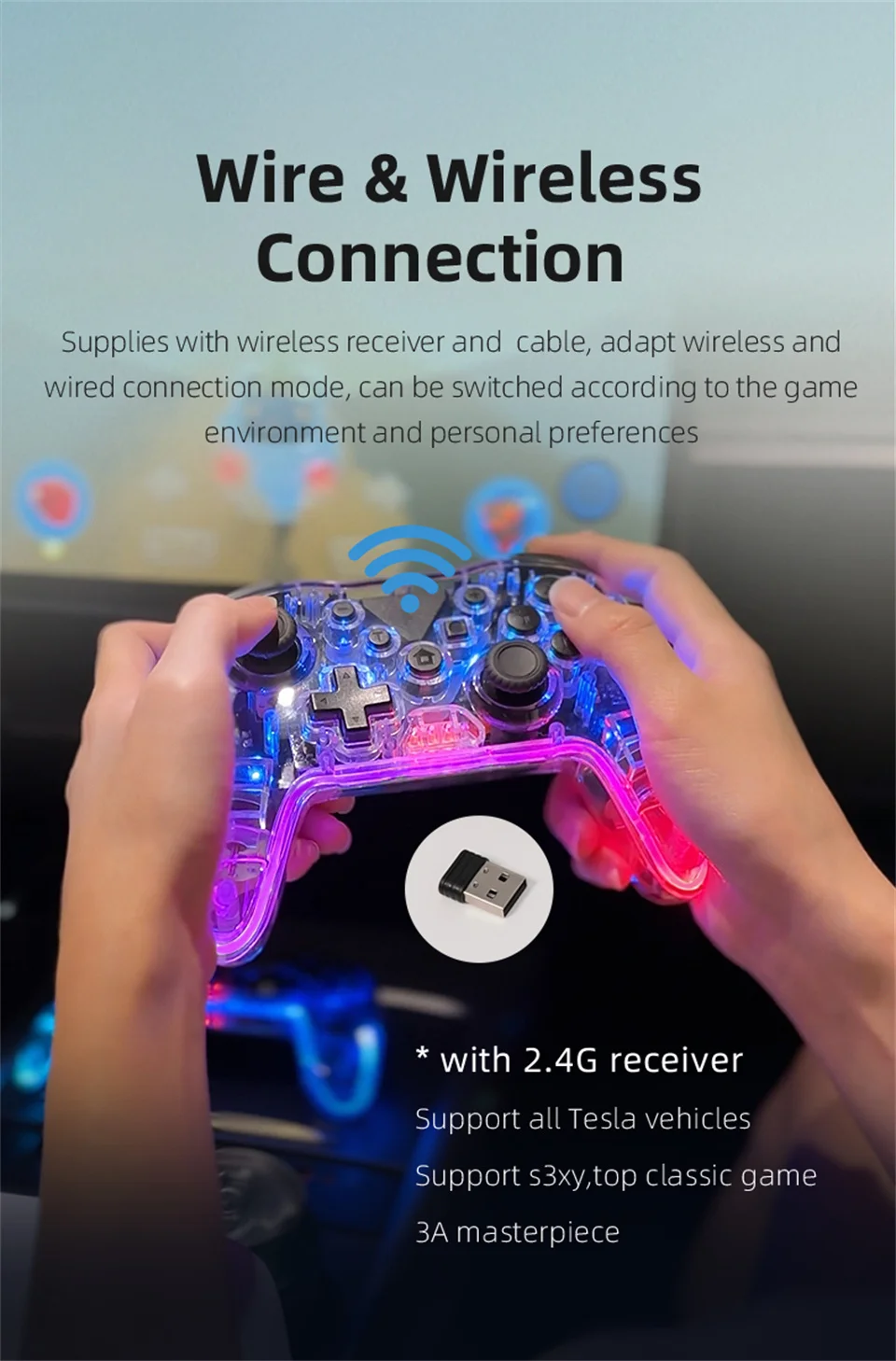 1. adecuado para el funcionamiento N-switch/PC win7 o superior/Android 6,0 o superior/Android TV /TV box/PS3 y otros juegos de plataformas.