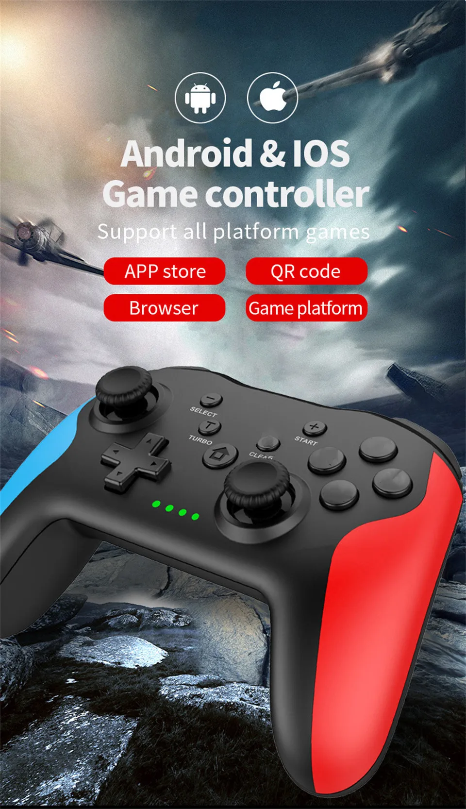2) dispositivos aplicables: smartphone/tablet/Smart TV, Set-Top Box/PC/para la consola PS3/consola n-Switch; (Bluetooth, 2,4g, conexión por cable)