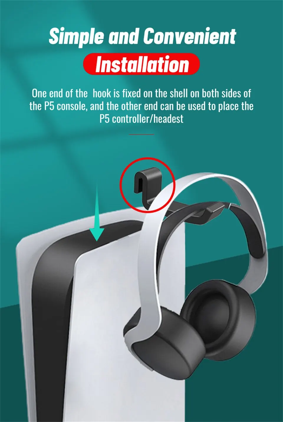 2) Fácil instalación: deje de destruir su pared, si usa nuestro soporte para auriculares, no necesita perforar un agujero ni pegar cinta adhesiva en la pared y esperar 24 horas, simplemente agregue las almohadillas de goma de silicona al colgador y coloque el colgador. en tu consola, entonces obtendrás lugar para tus controladores inmediatamente.