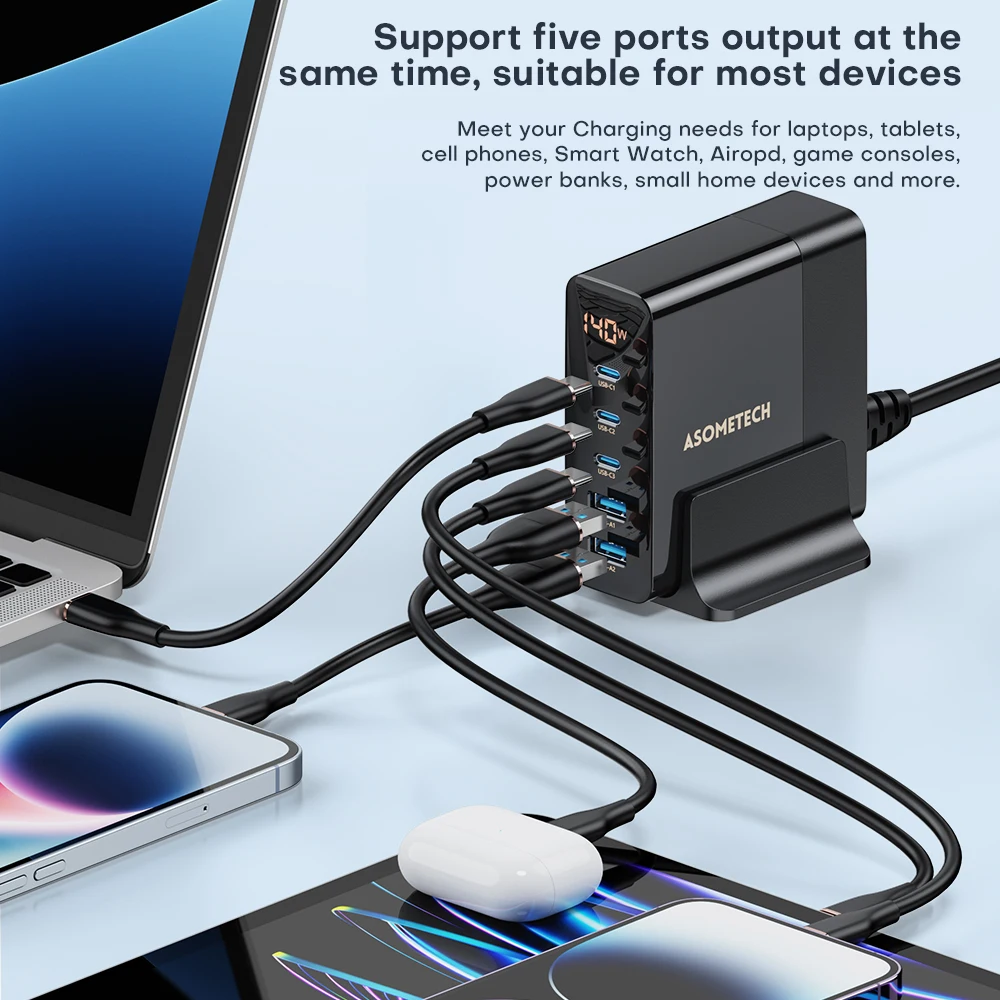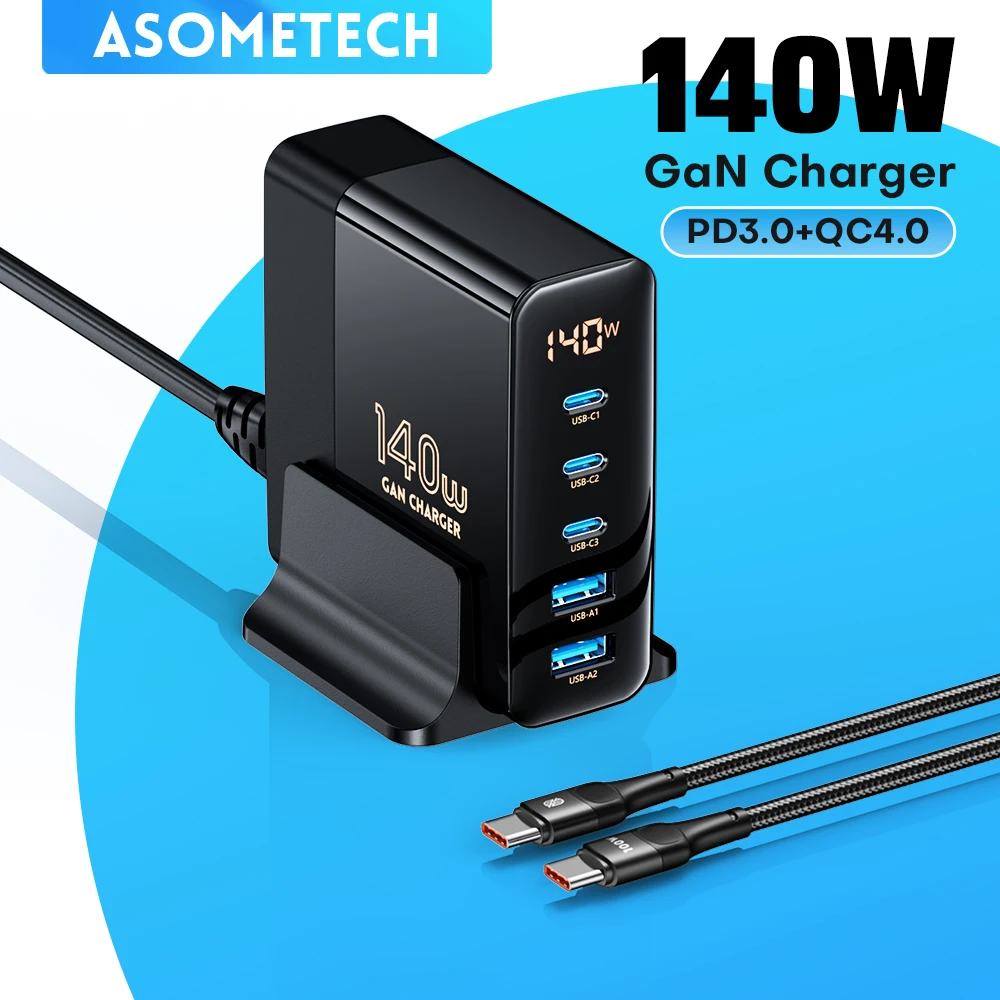 Comprar GaN cargador rápido de 140W, estación de carga de 5 puertos USB C, PPS, PD, QC, para 14, 13 Pro Max, Xiaomi, Samsung, ordenador portátil de escritorio, MacBook