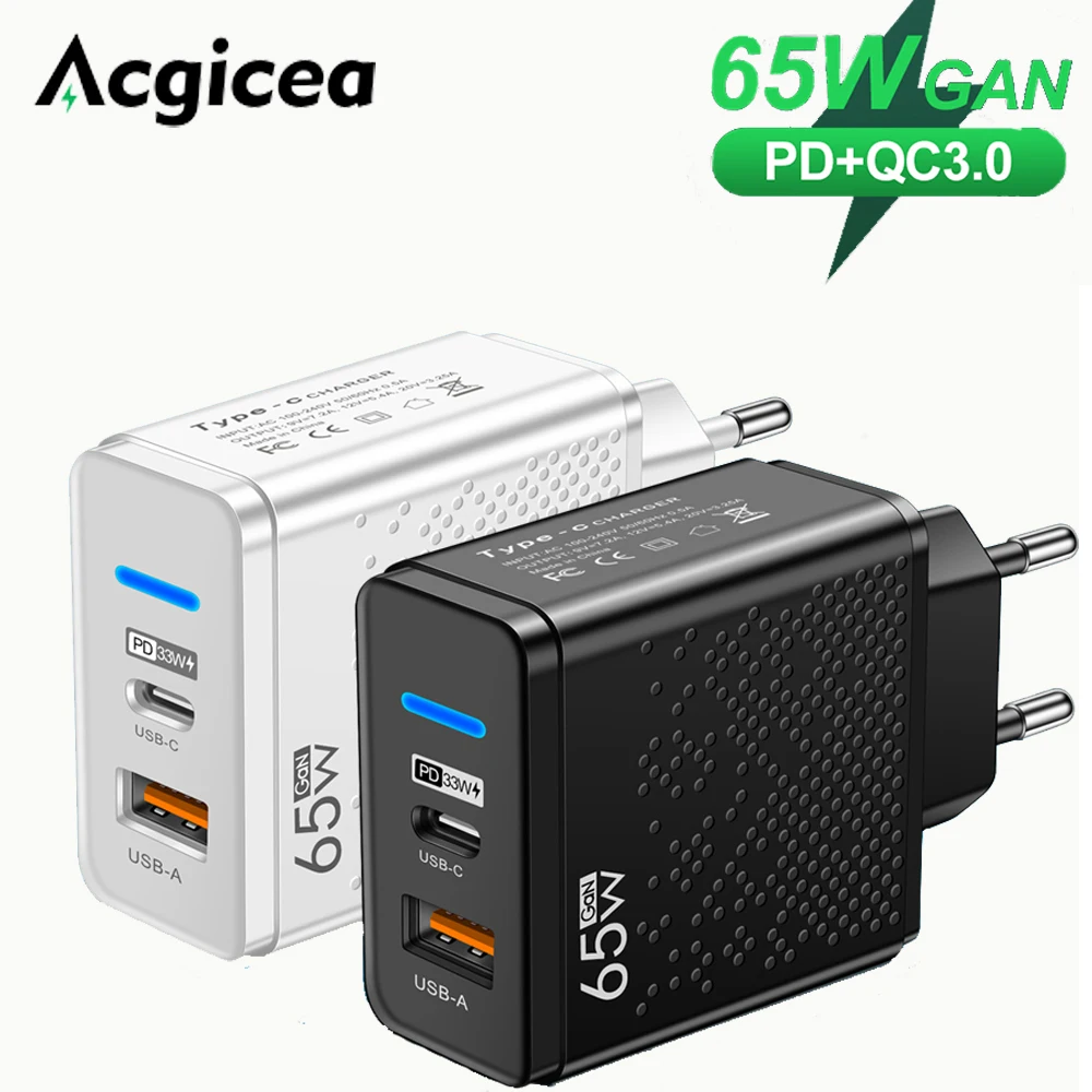 Comprar GaN-cargador rápido para teléfono móvil, adaptador de pared QC3.0, 65W, USB C, PD, para iPad, Xiaomi, Samsung, iPhone