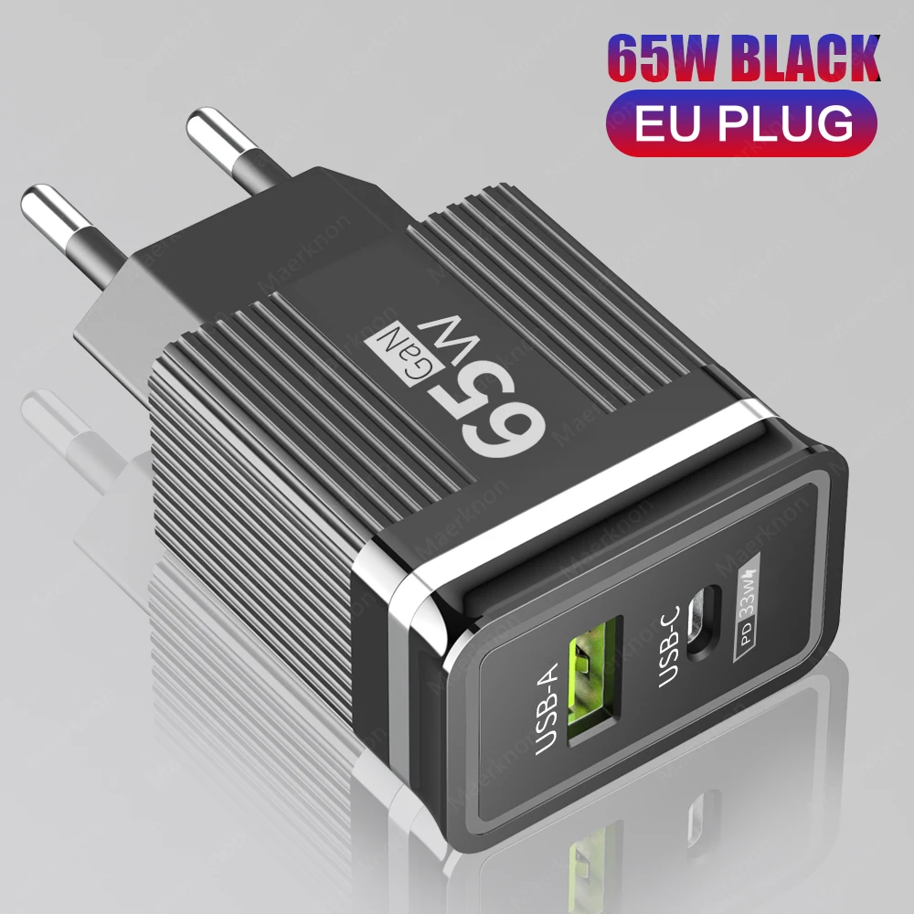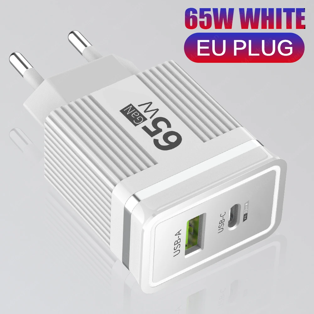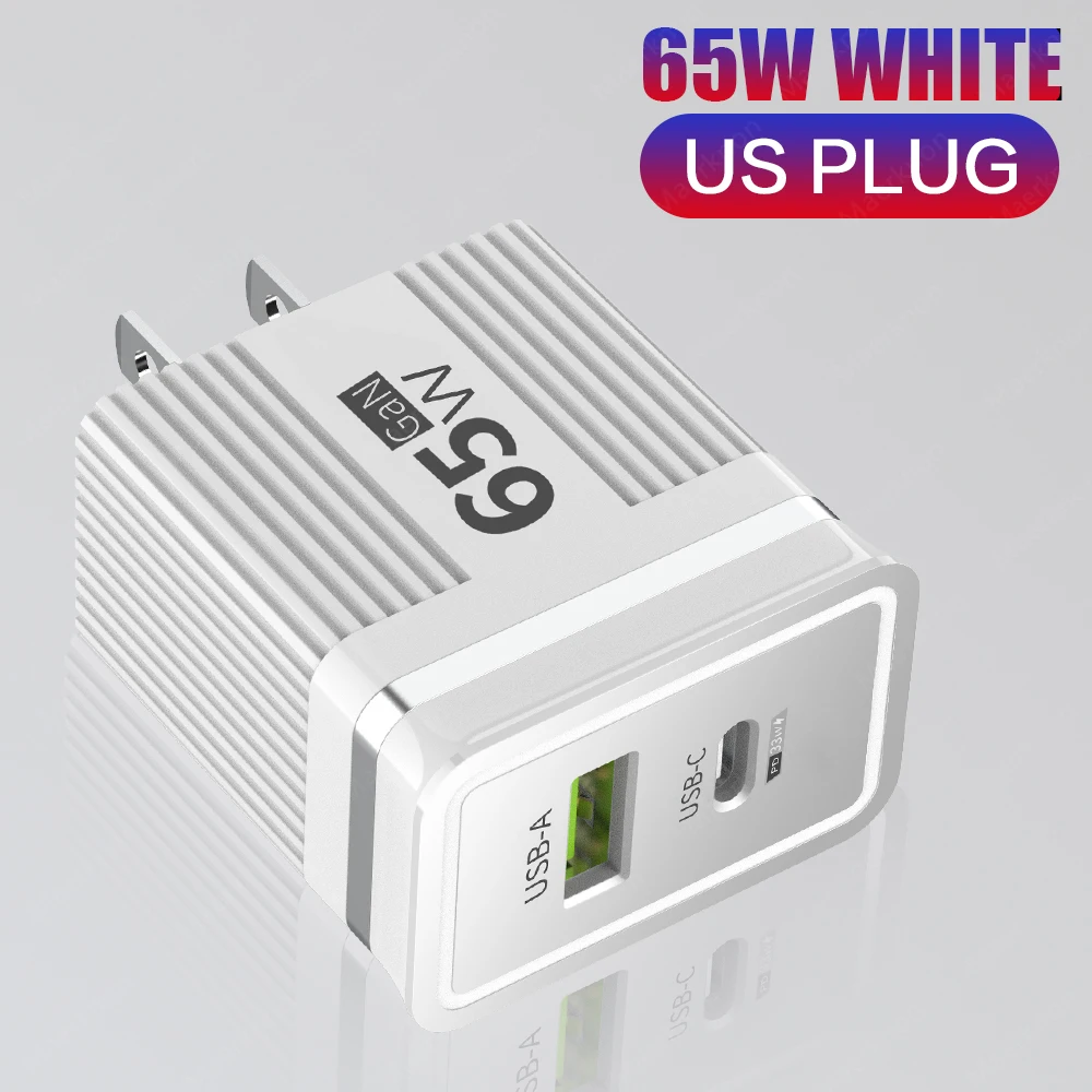 Cargador de teléfono USB GaN de 65W, carga rápida 3,0 tipo C, cargador de pared PD para iPhone, Xiaomi, Samsung, Huawei, enchufe europeo/estadounidense, adaptador de corriente para teléfono