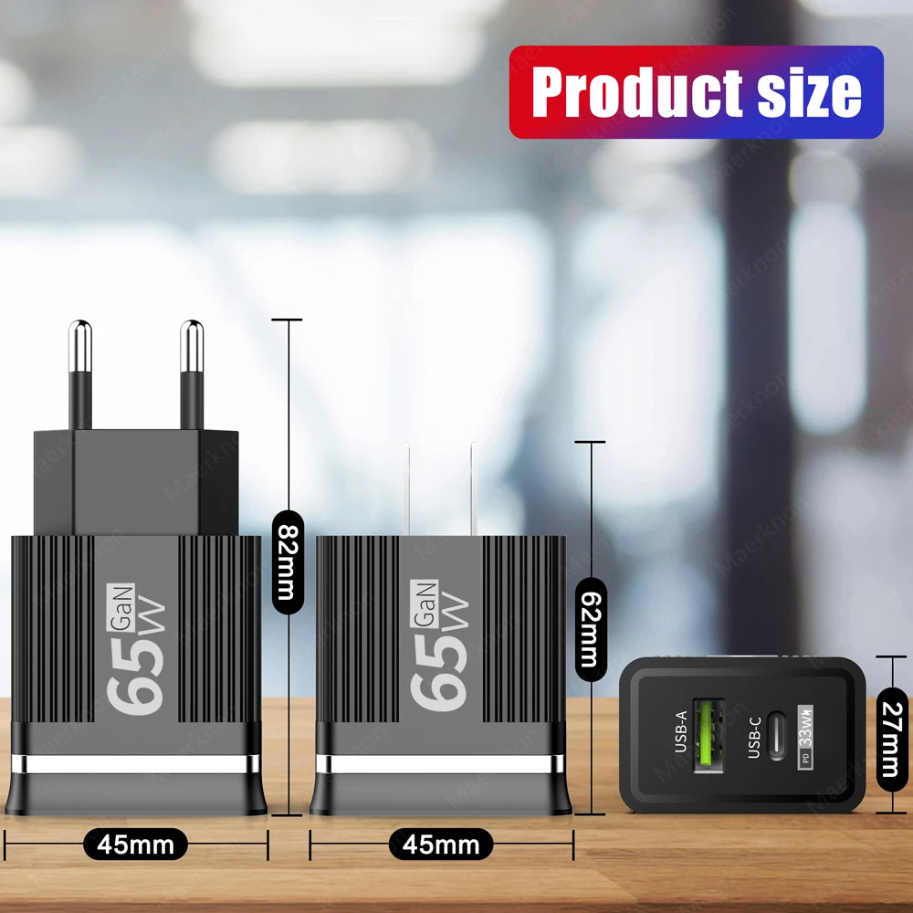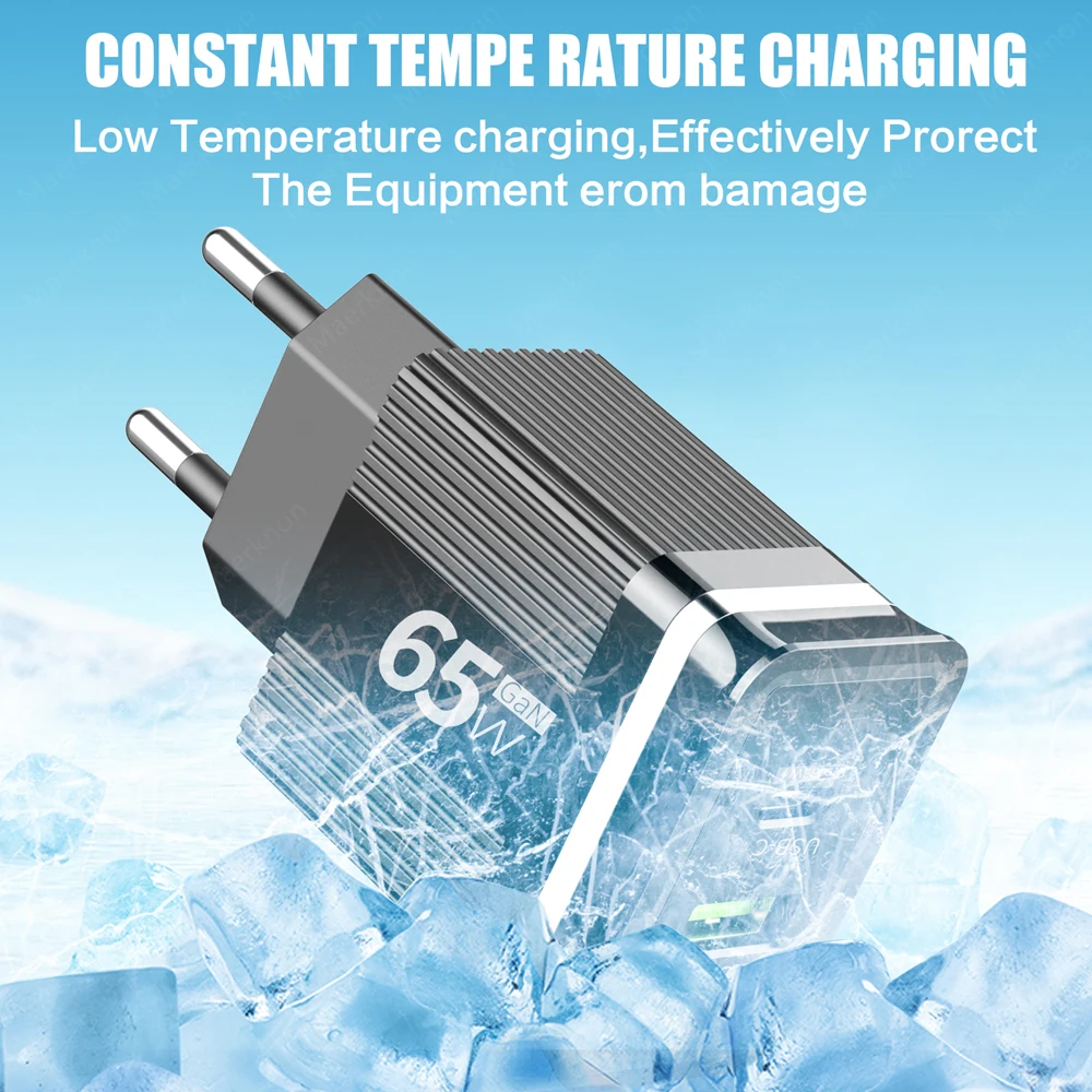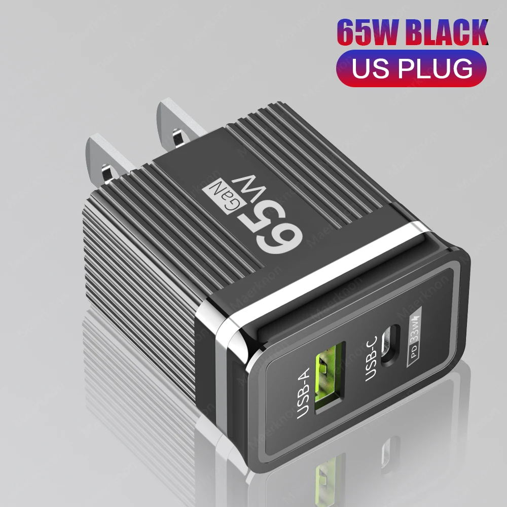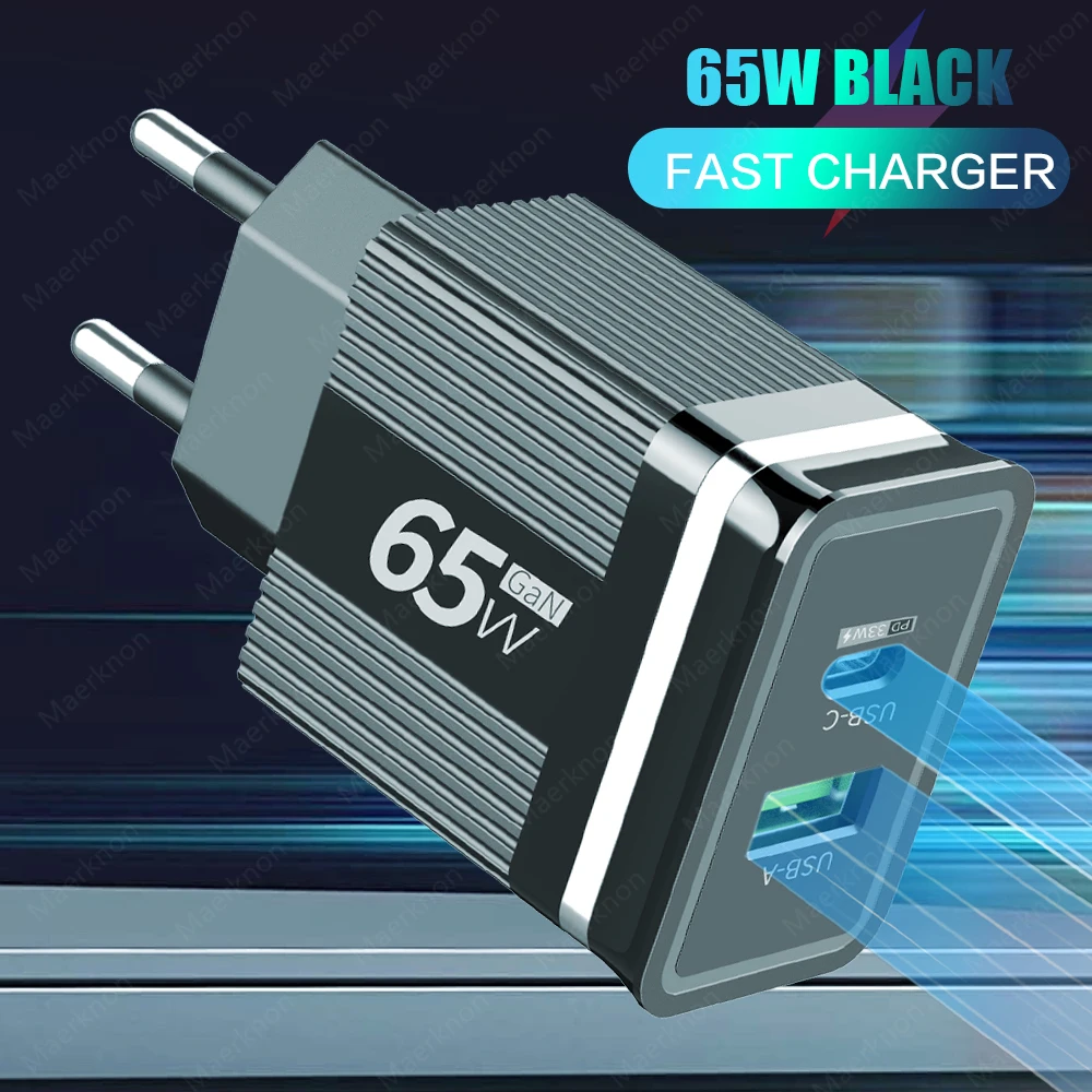 Cargador de teléfono USB GaN de 65W, carga rápida 3,0 tipo C, cargador de pared PD para iPhone, Xiaomi, Samsung, Huawei, enchufe europeo/estadounidense, adaptador de corriente para teléfono