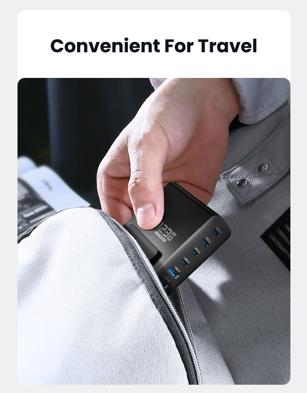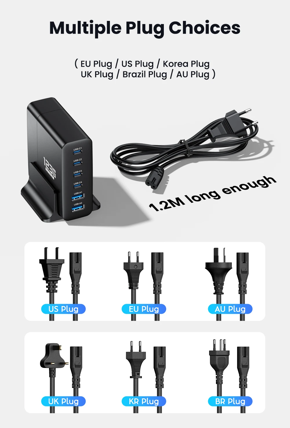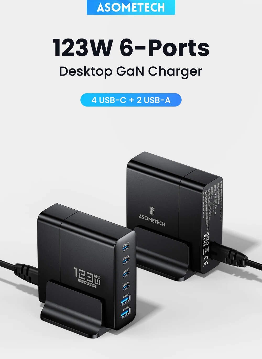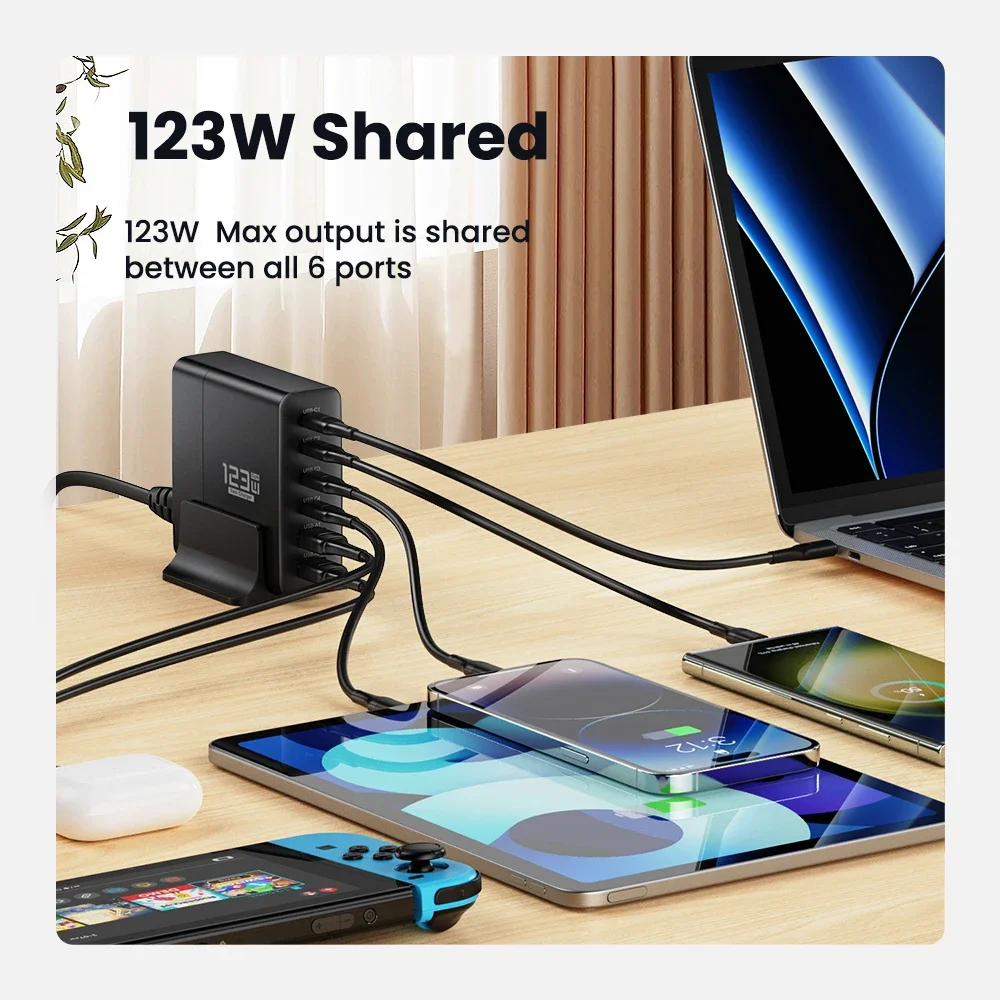 Comprar GaN-cargador USB 5 en 1 de 123W, estación de carga multipuerto, USB tipo C, Cargador rápido de escritorio para iPhone 14, Xiaomi, Smartphone, portátil