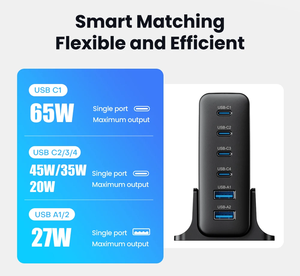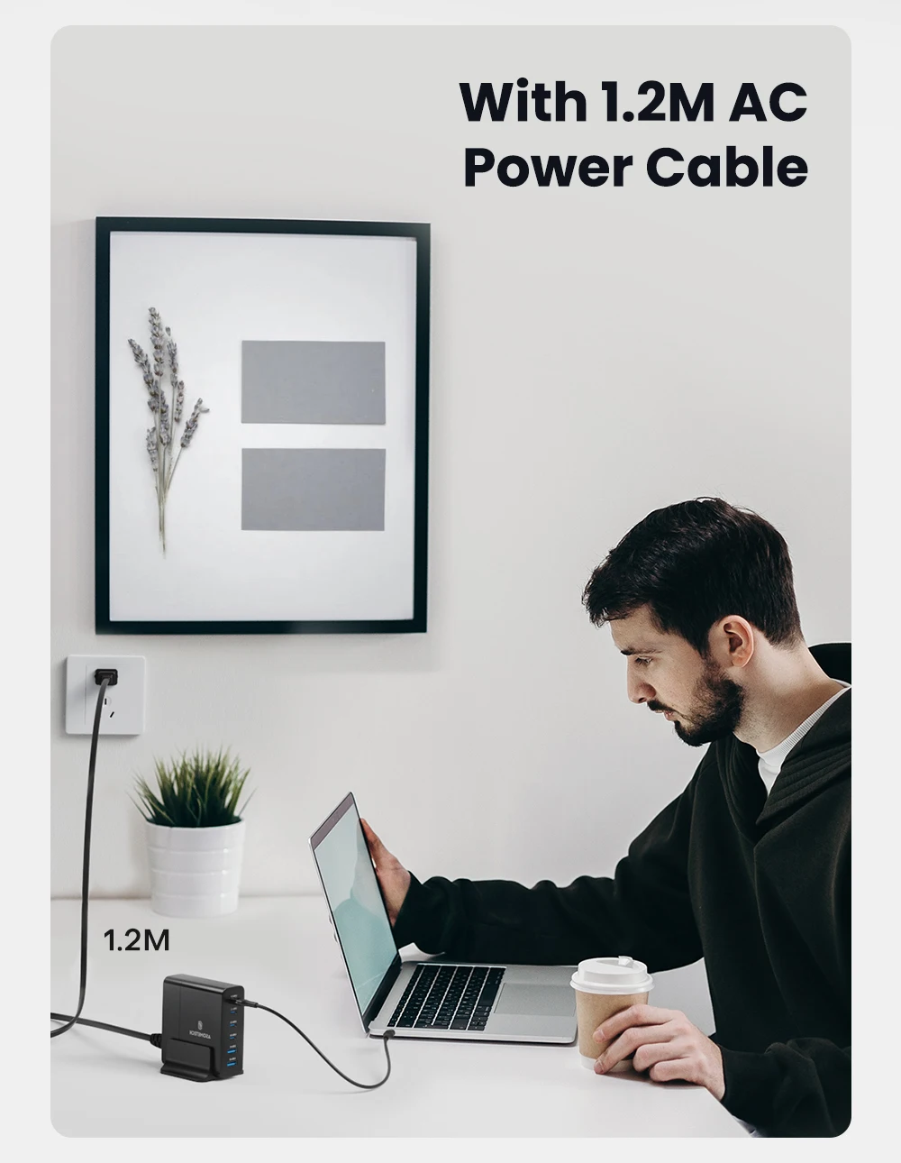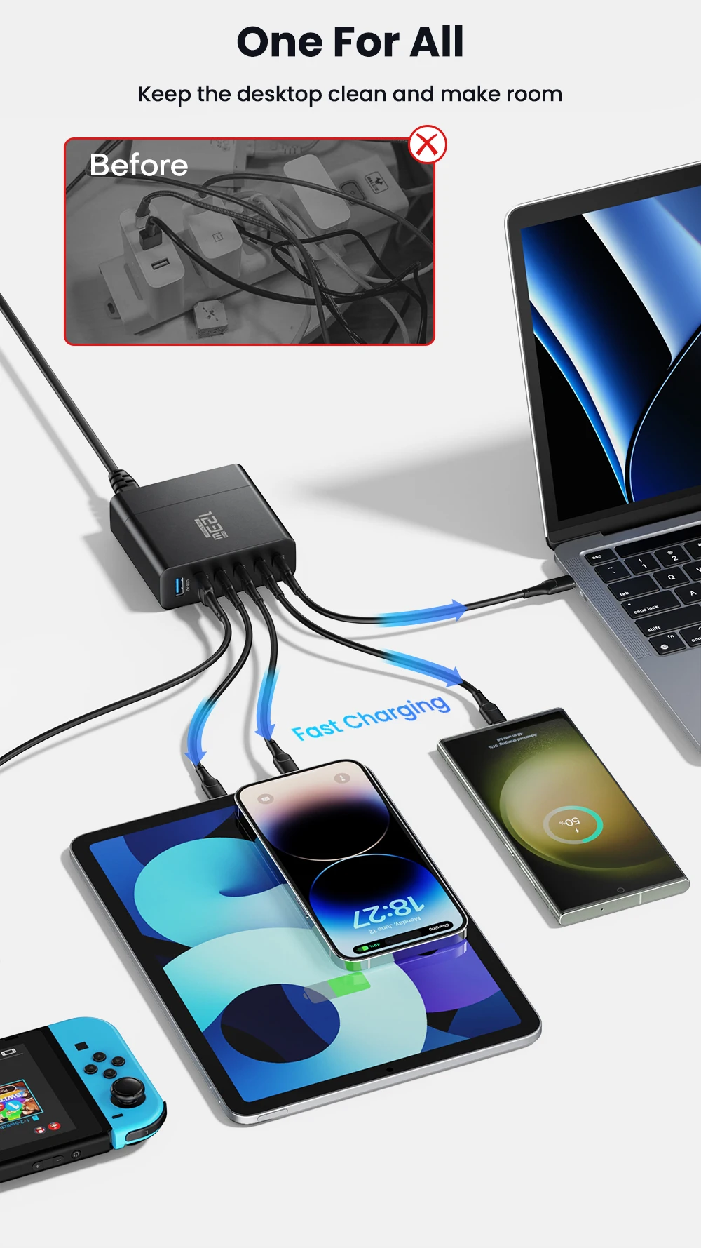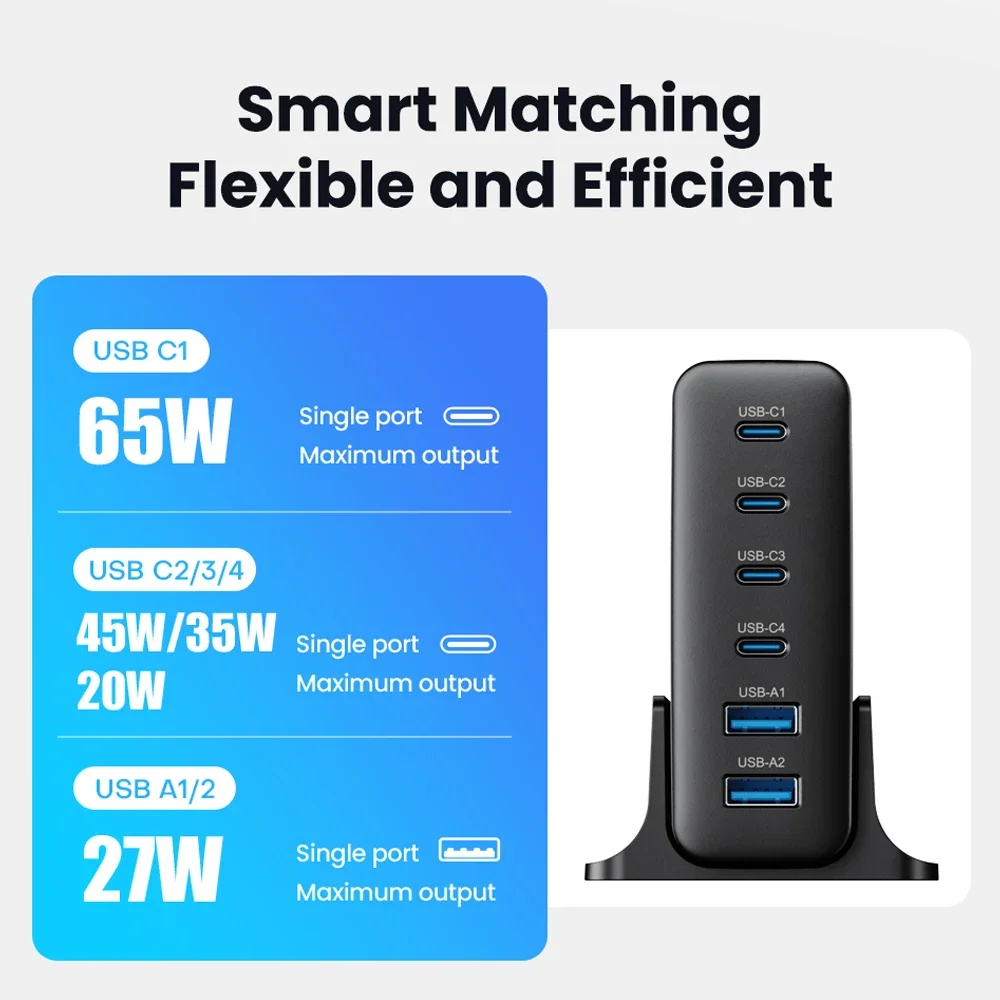 Comprar GaN-cargador USB 5 en 1 de 123W, estación de carga multipuerto, USB tipo C, Cargador rápido de escritorio para iPhone 14, Xiaomi, Smartphone, portátil