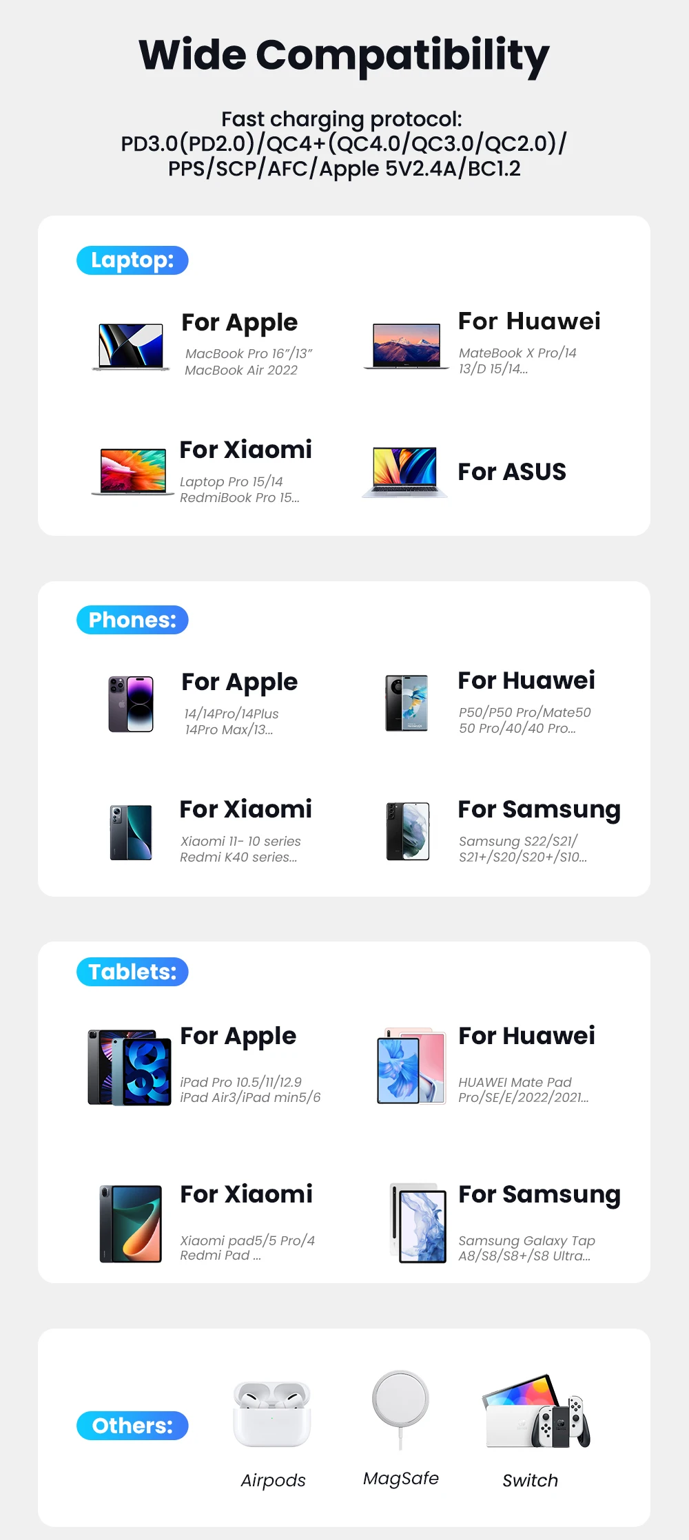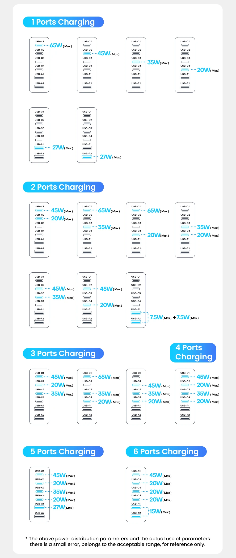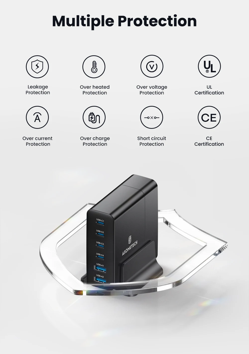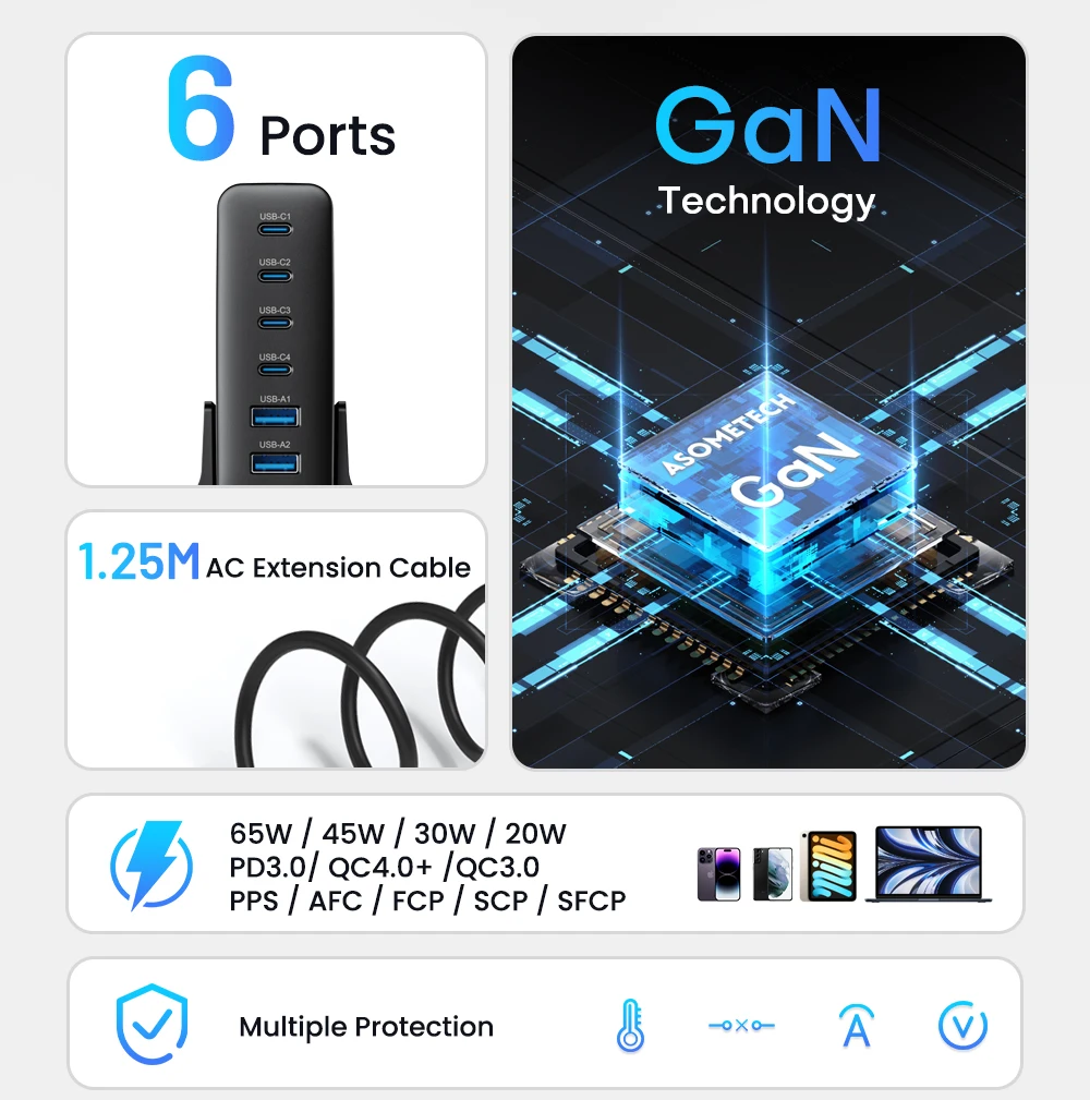 Comprar GaN-cargador USB 5 en 1 de 123W, estación de carga multipuerto, USB tipo C, Cargador rápido de escritorio para iPhone 14, Xiaomi, Smartphone, portátil
