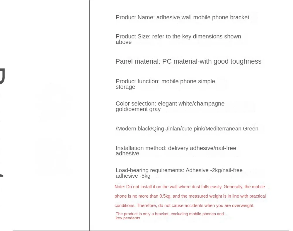 Nombre del producto: soporte adhesivo para teléfono móvil de pared