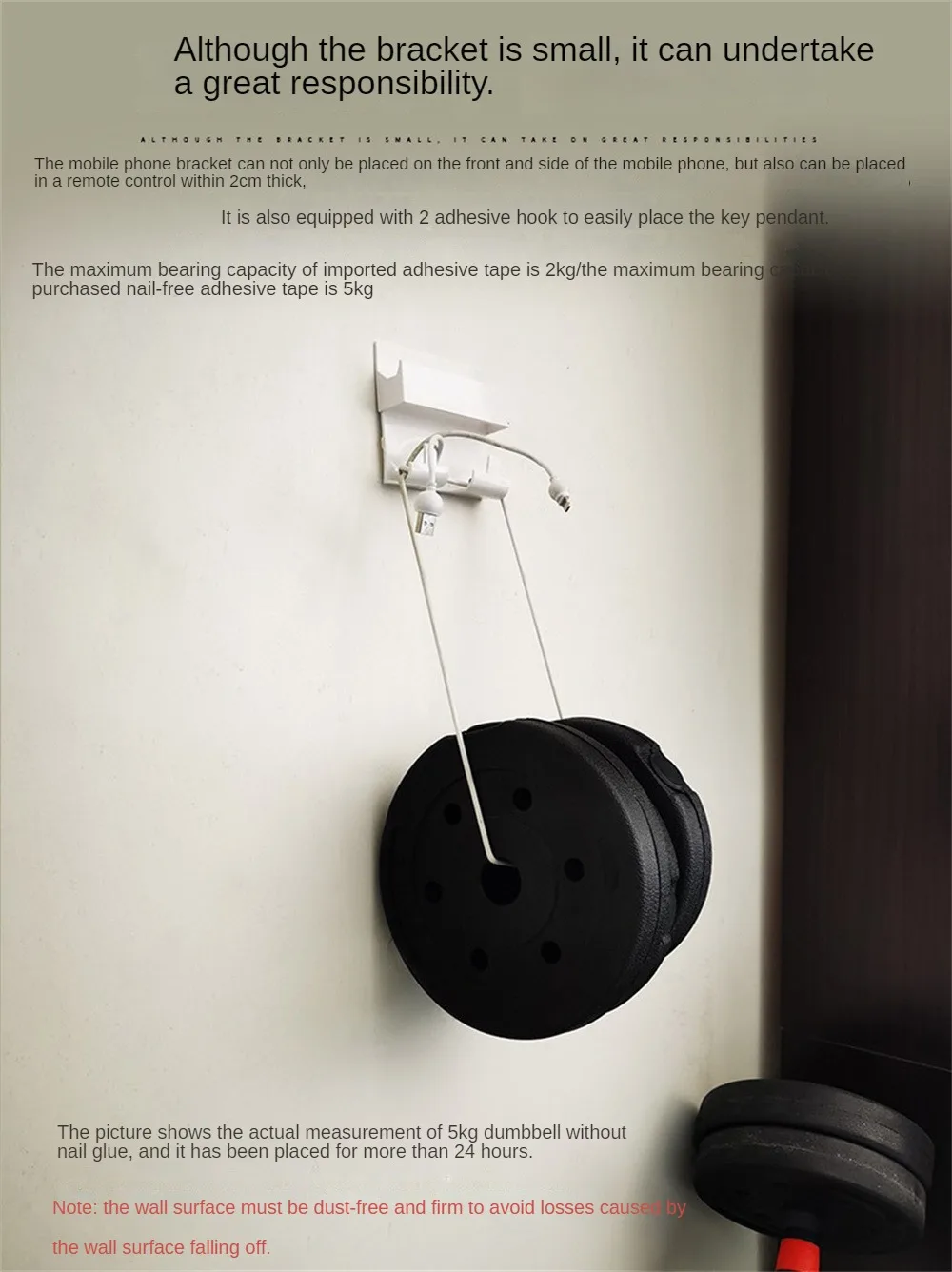 Requisitos de soporte de carga: pasta adhesiva 2 KG/adhesivo sin clavos 5 KG