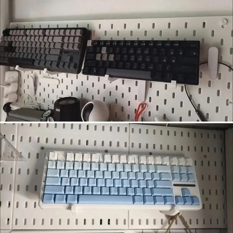 Features:OOTDTYMaximizes your workspaces efficiency with 40mm Spacing pegboard Keyboards and controller hook holder, to keep your desk tidy and organized.