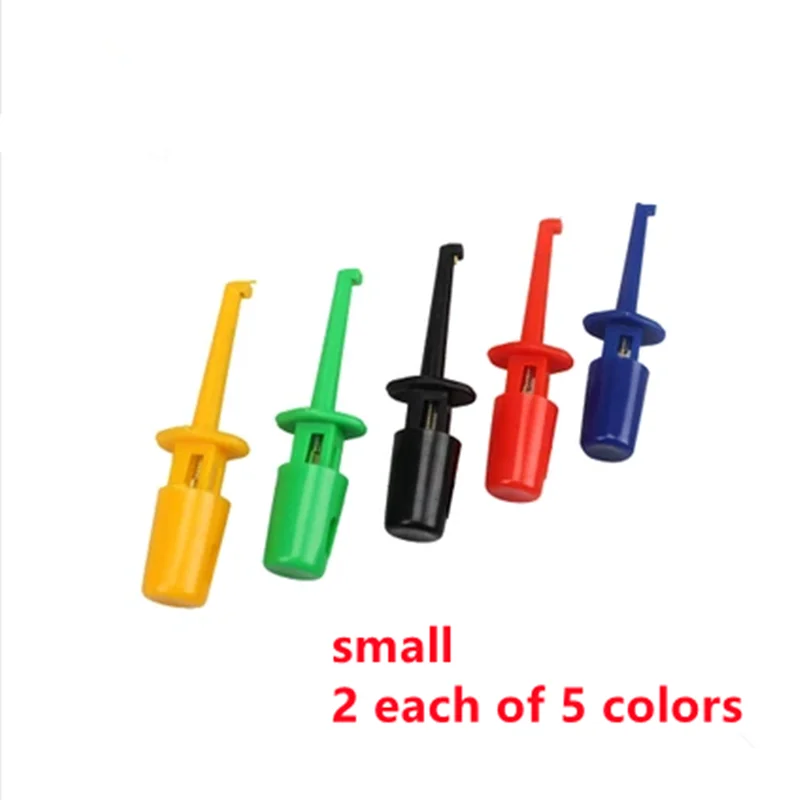 Comprar Gancho de prueba grande/pequeño de 10 piezas, sonda de prueba para pruebas electrónicas, grabador IC, pinza de cocodrilo redonda, Clip de prueba, mezcla de colores