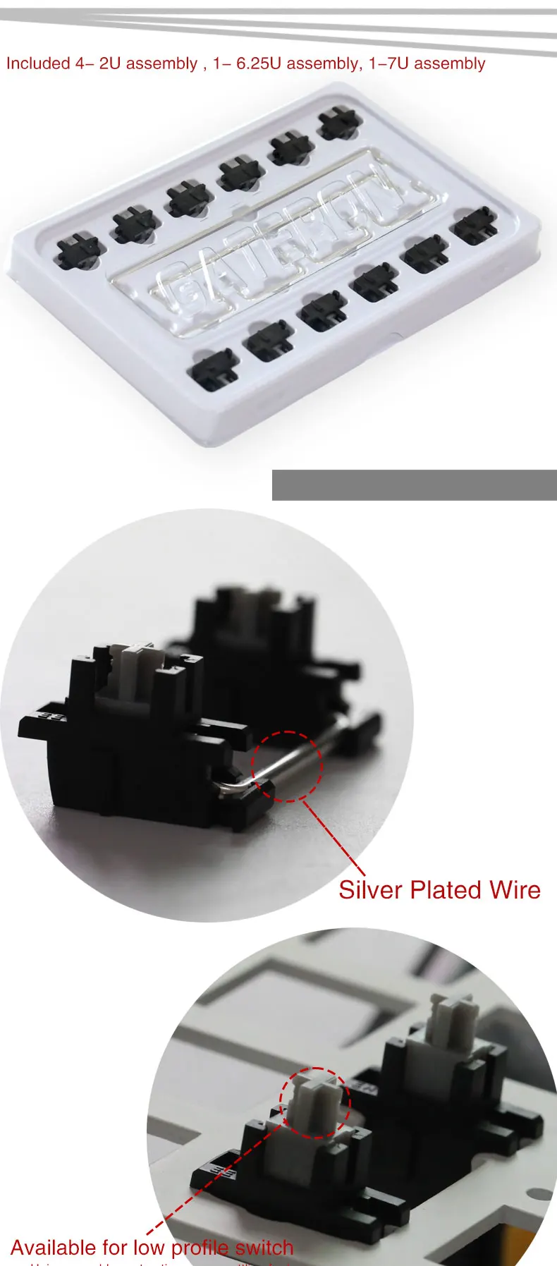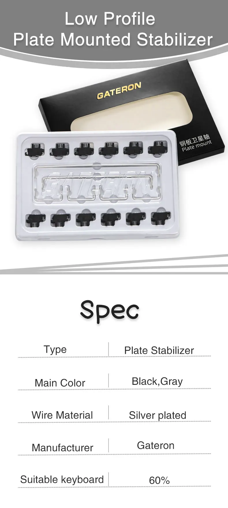 Gateron-estabilizador de montaje en placa negra, eje satélite 2u 6.25u 7u, alambre de acero plateado para placas de teclados MX