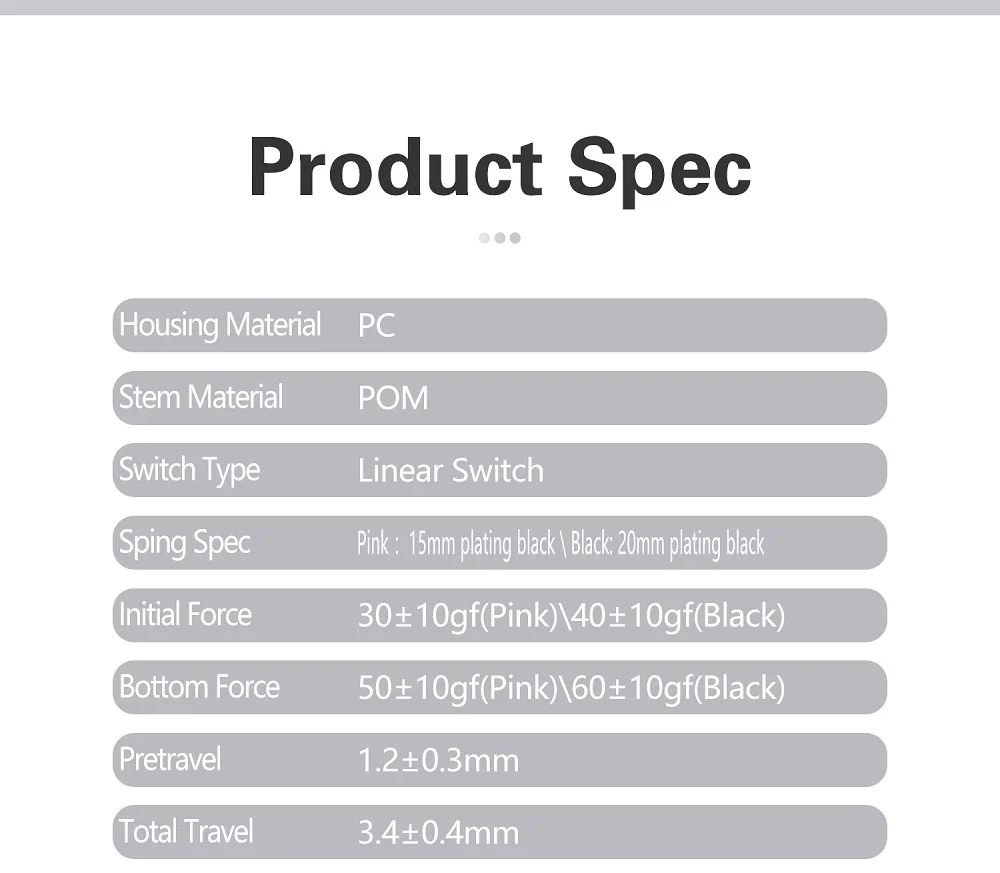 Comprar Gateron-Interruptor de eje lineal para teclado mecánico, 35 piezas, tinta rosa y negra, Extras, 50g, 60g, 5 pines, RGB, mx, 80m, prelumado