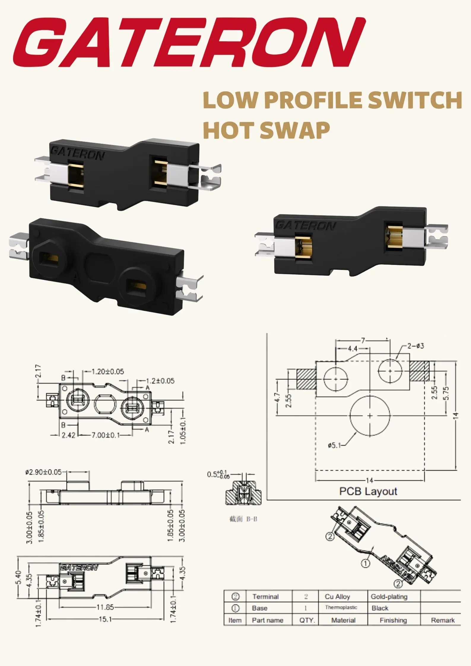 Este enchufe intercambiable en caliente de bajo perfil se aplica para el teclado de bajo perfil y no es compatible con un teclado de interruptor de estilo MX normal.