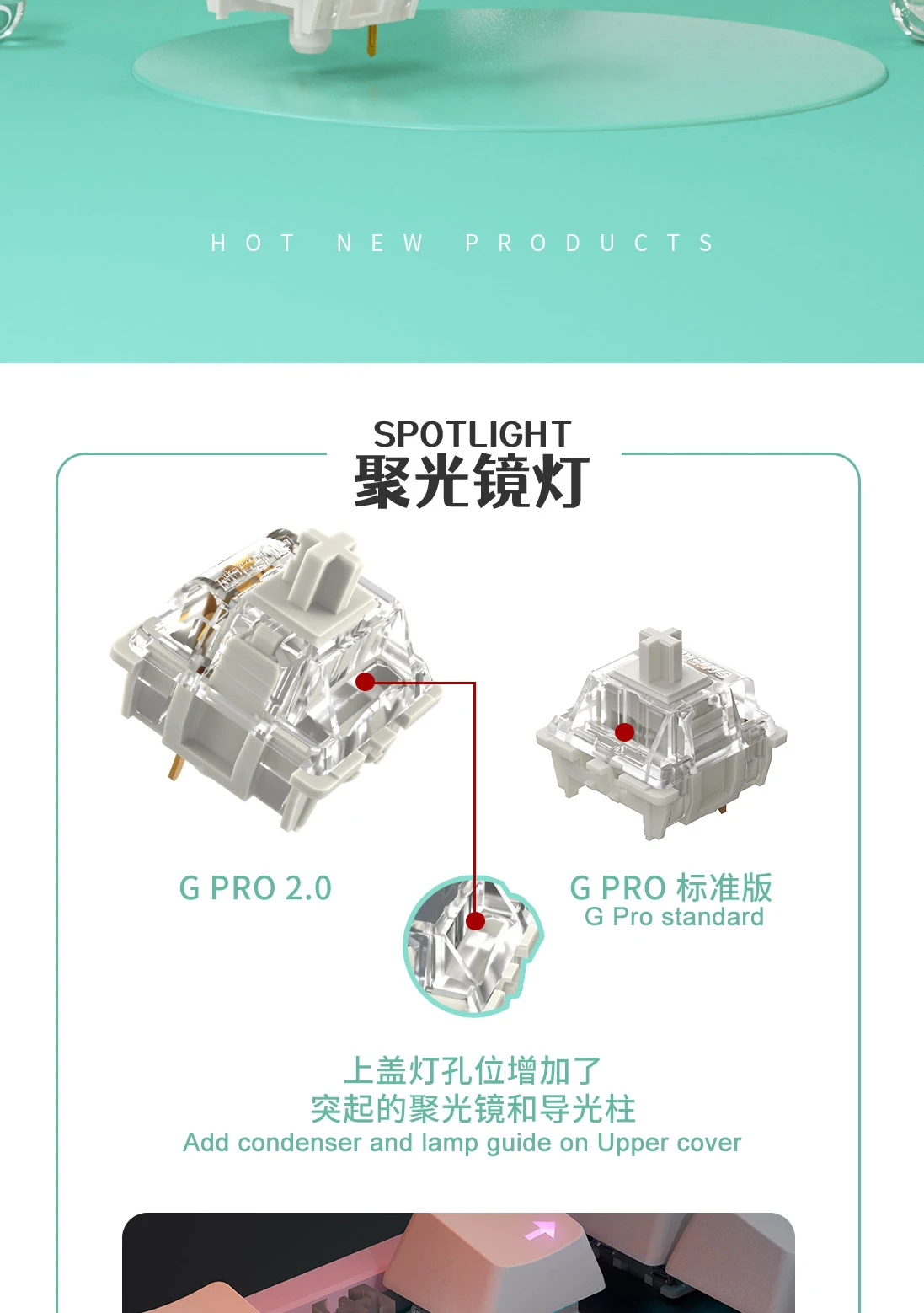 Comprar Gateron-Interruptor táctil lineal para teclado mecánico, dispositivo de 3 pines RGB, color blanco, amarillo, rojo, plateado y marrón, modelo Pro V2 2,0
