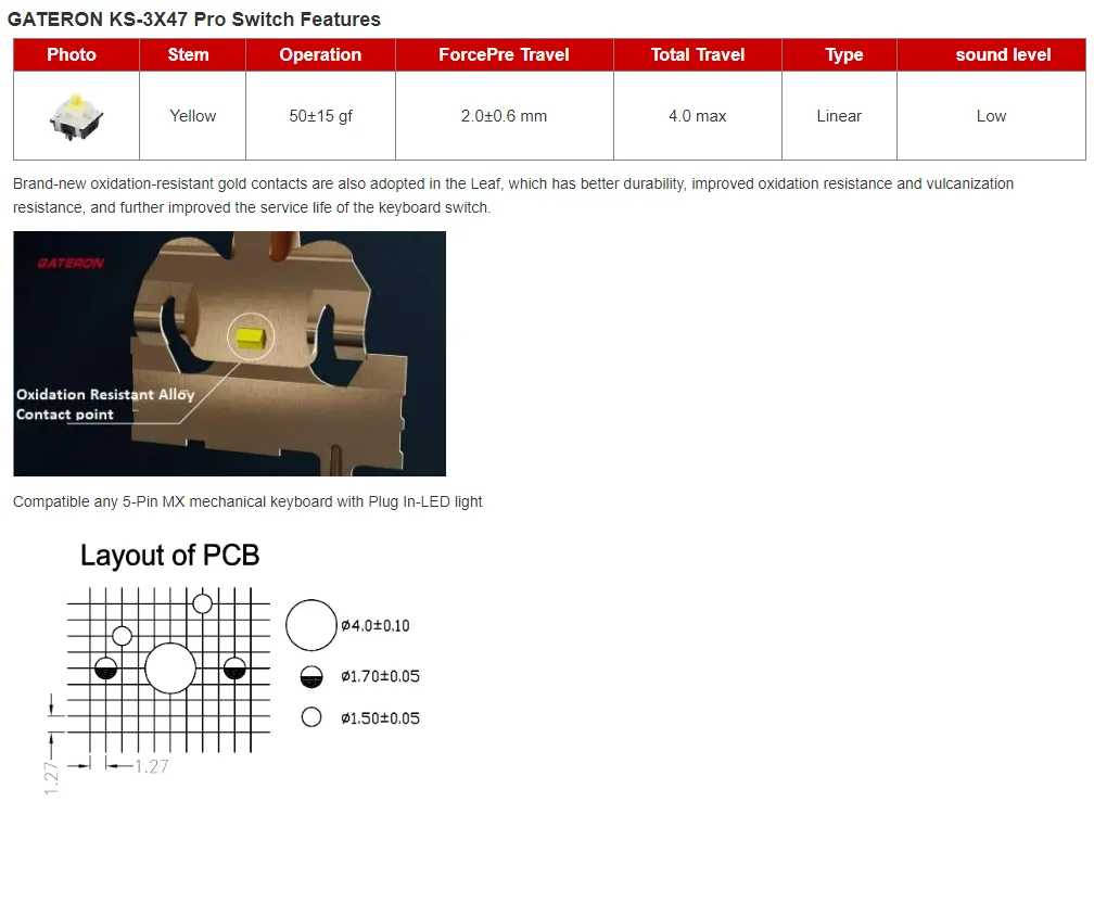 Comprar Gateron-Interruptor de teclado mecánico para juegos, conmutador con base negra y amarilla Pro, KS-3X47 lineal de 5 pines RGB, para escritura suave