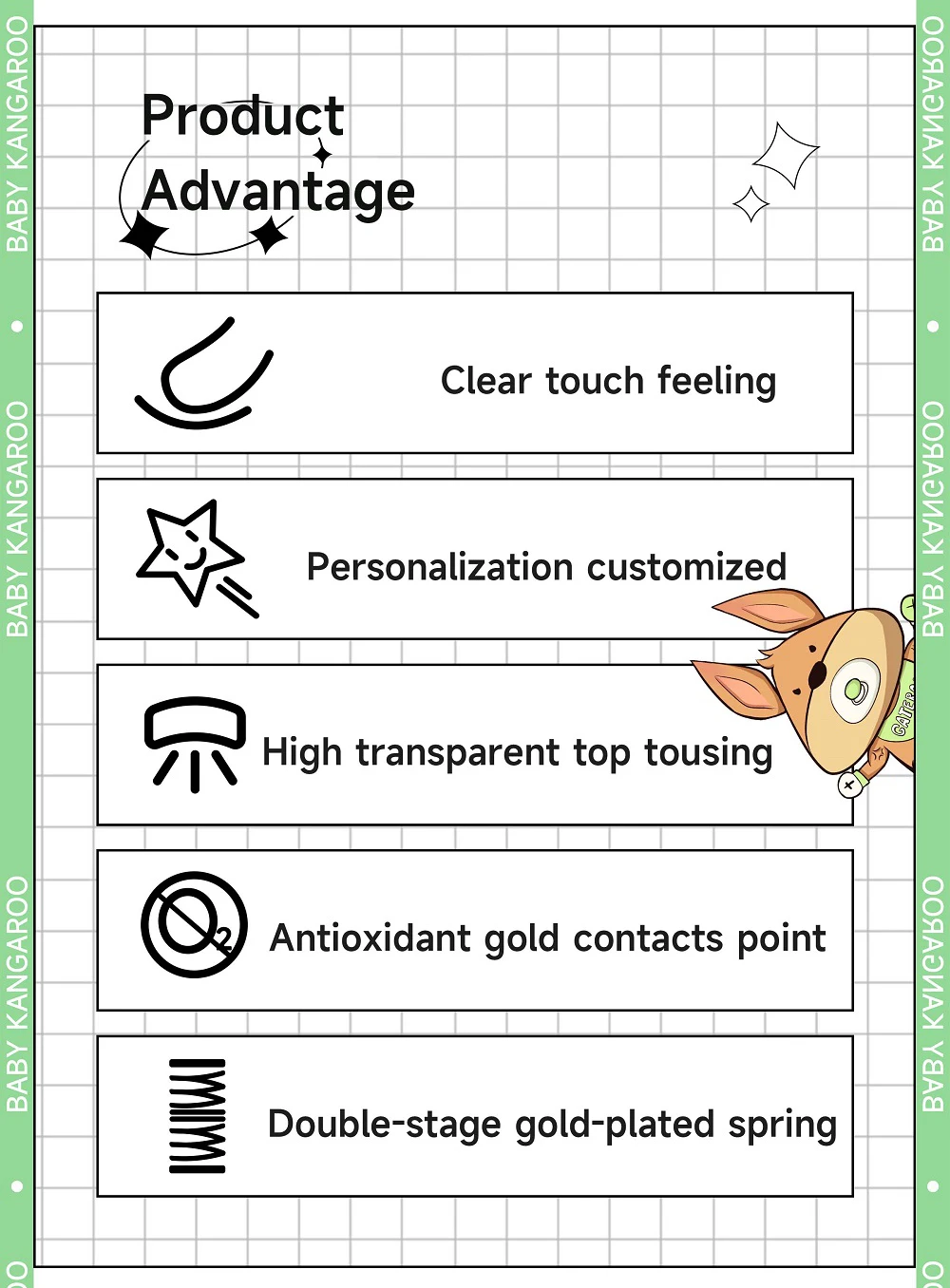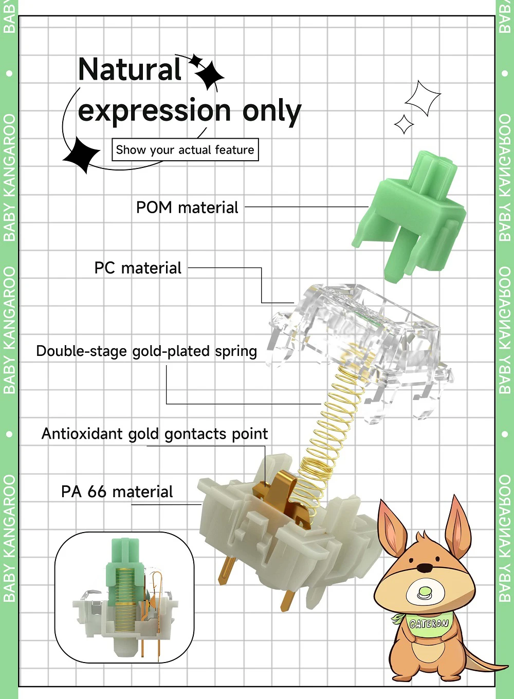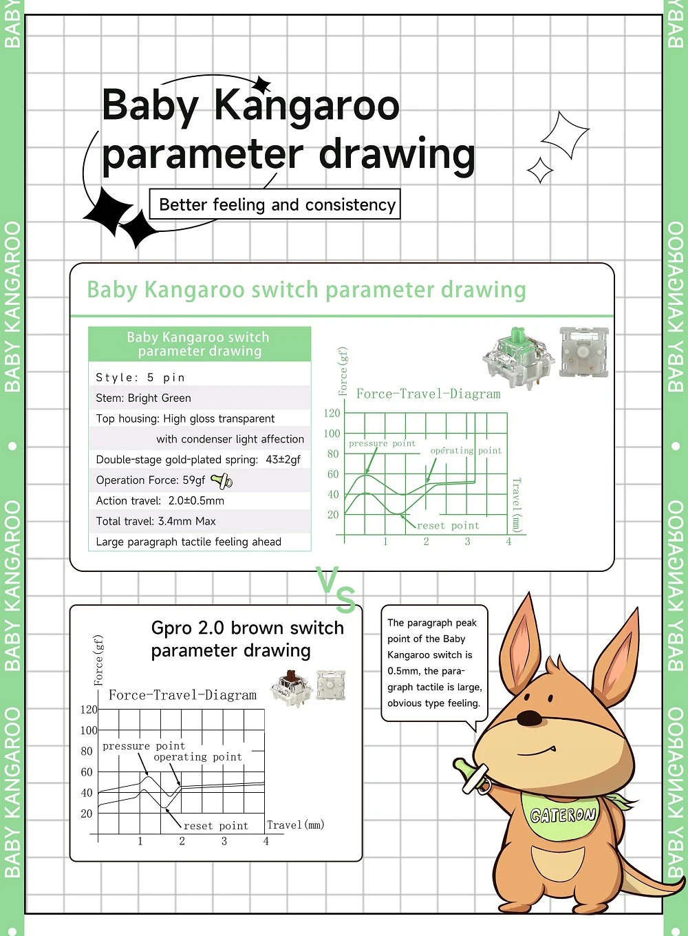 Comprar GATERON Kangaroo Switch 2,0 bebé táctil, interruptor de teclado mecánico 5 pines 59g RGB, interruptores mecánicos intercambiables en caliente para teclado