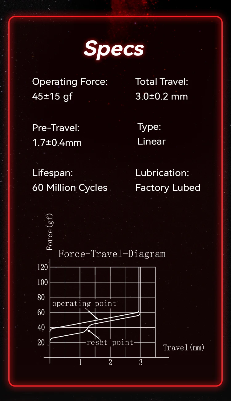Estoy interesado en la diferencia con el Gateron original (sí, es un bolígrafo, las características distintivas se ven en el sitio web oficial). En realidad, son solo interruptores baratos normales en una carcasa similar. Principales diferencias: 1. Visual - ausencia de "orejas", la forma del enchufe difiere del original. 2. Sonido de clic - más silencioso 3. Longitud de carrera - más corta, altura - más corta (si tomas varios interruptores como reemplazos, notarás una diferencia de altura de unos pocos milímetros). 4. La fuerza de presión requerida es mayor, y la suavidad del movimiento es notablemente menos suave y resbaladiza. Necesitaba reemplazar una llave, así que moví la original de un botón poco utilizado y la reemplacé con este interruptor. Funciona, pero la calidad es bastante decepcionante para ese precio.
