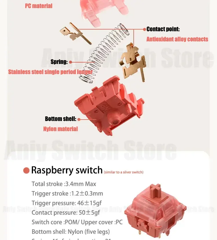 Comprar Gateron NuPhy-interruptores de frambuesa, lubricación lineal de fábrica, 5 pines, 46gf, interruptor de teclado mecánico para AULA F75 AJAZZ AK820