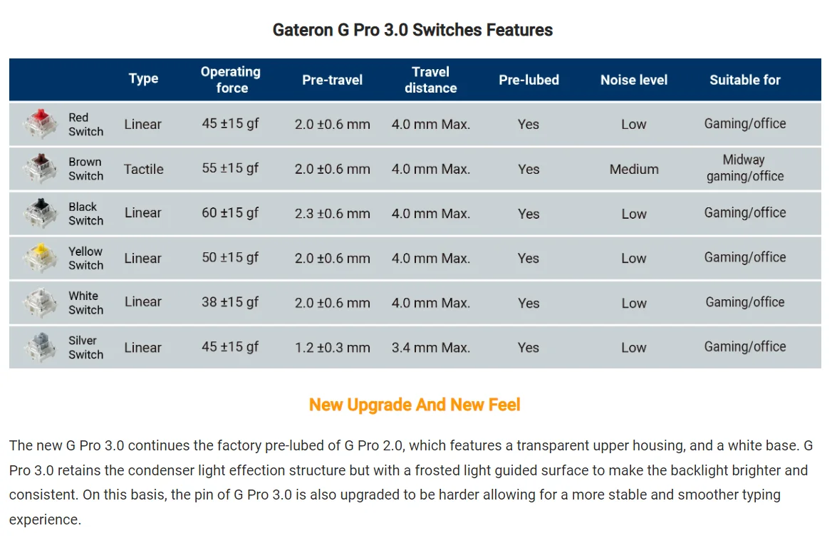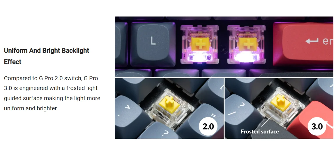 Comprar Gateron Pro-Interruptor táctil lineal para teclado mecánico, conmutador de 3 pines RGB, color blanco, amarillo, rojo, plateado y marrón, prelumado, V2 2,0