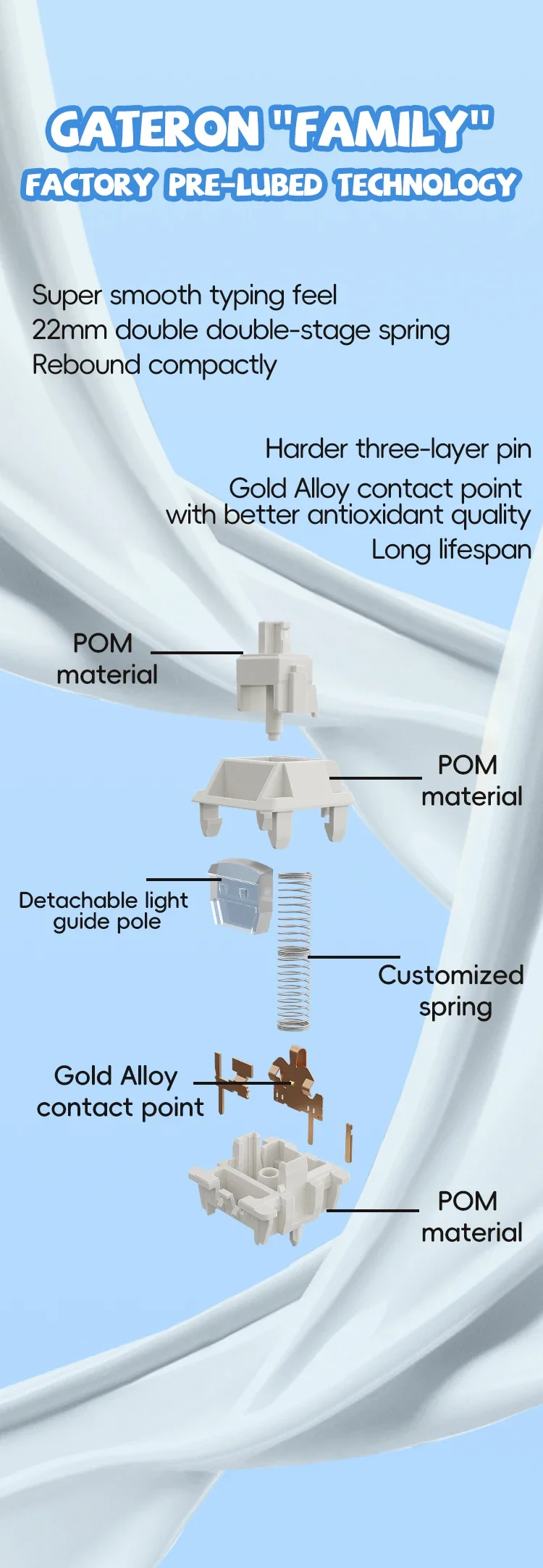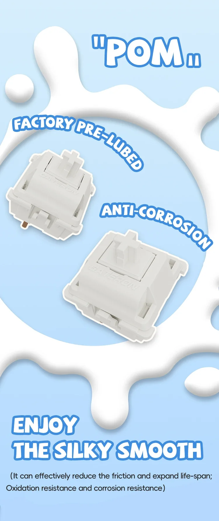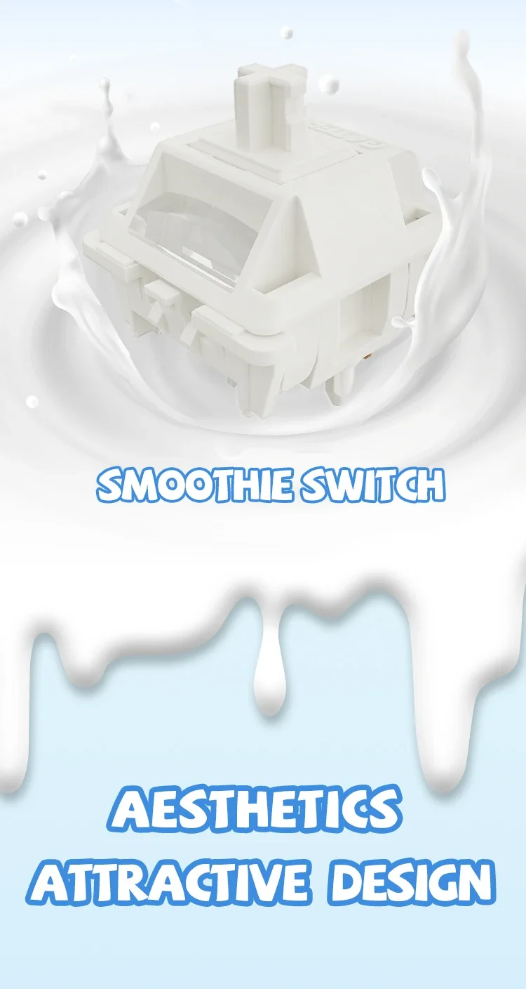 El interruptor Smoothie presenta una composición que reduce eficazmente la fricción, ampliando su vida útil. Con resistencia a la oxidación y resistencia a la corrosión inherentes, este interruptor garantiza un rendimiento constante a lo largo del tiempo, manteniendo su calidad prístina incluso con un uso prolongado.