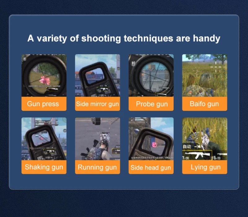 Juegos aplicables: para PUBG/Fortnite/Minecraft/Mobile Legend/Rules of Survival/Knife Out/Survivor/Royal/Warrior Arena/Key Action/Overwatch/Counter Strike/Call of Duty, Shooting en primera persona, Juegos de MOBA, etc.