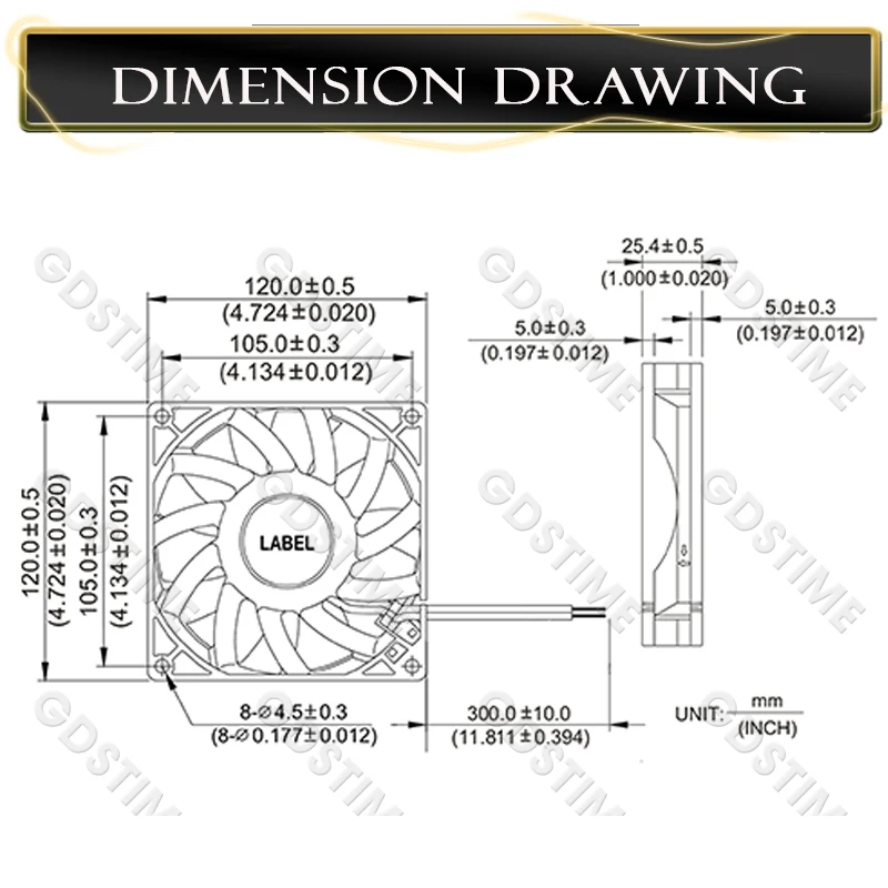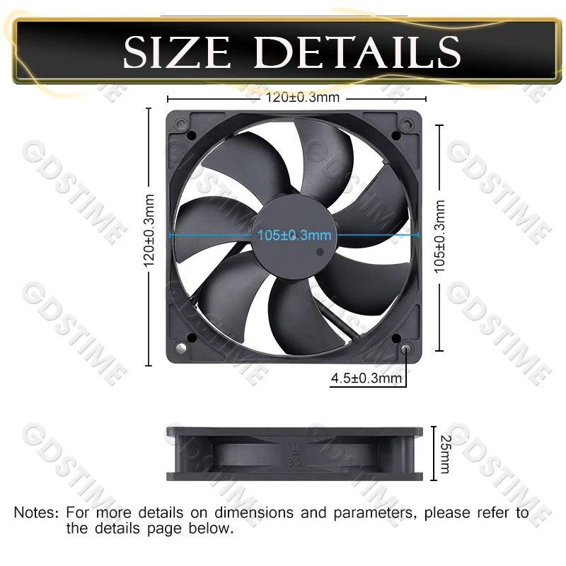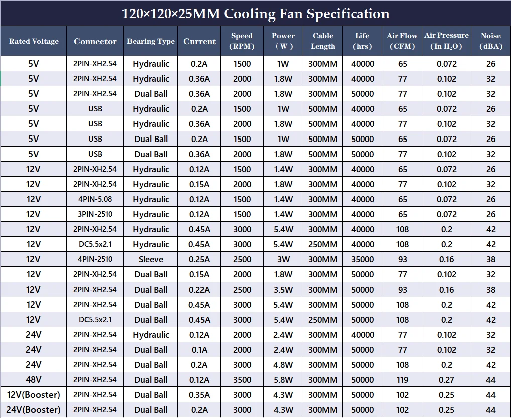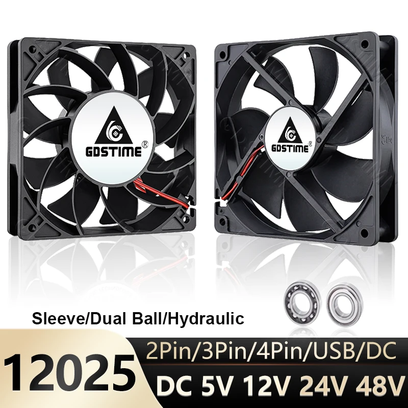Gdstime 120x120x25mm DC 5V 12V 24V 48V 2Pin/3Pin/4Pin/USB/DC