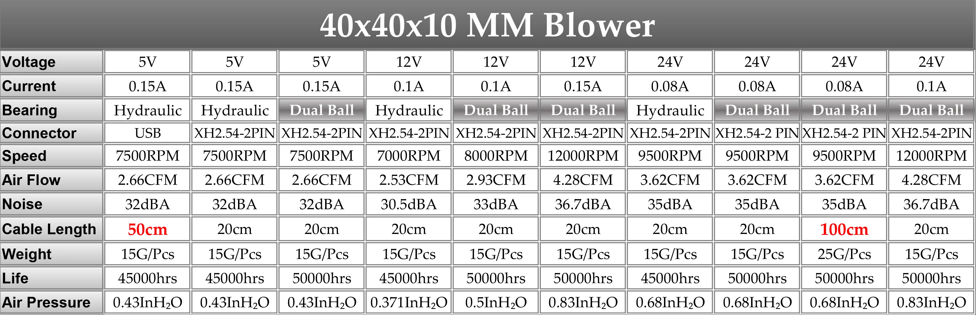 Gdstime 4010 CC 5 V 12 V 24 V 2 pines USB 40x10 mm