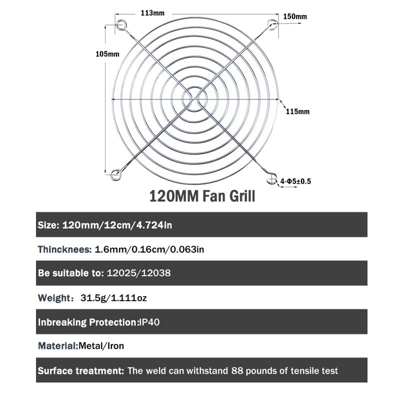 120x120mm PC funda de ordenador ventilador cubierta de dedo de Metal Protector parrilla 120mm 12cm