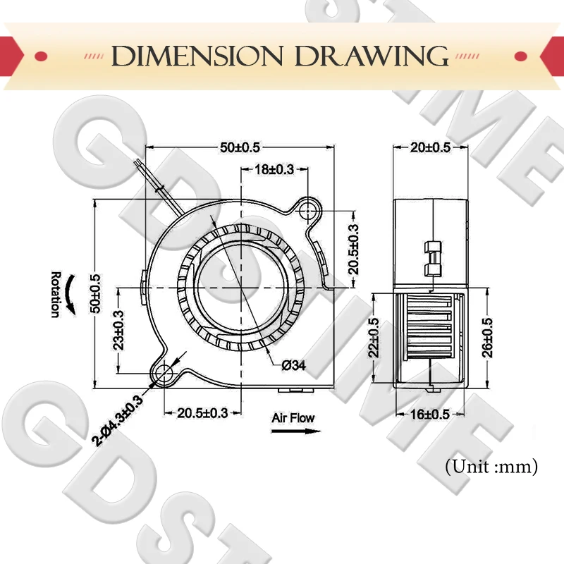 Rodamiento de bolas doble Gdstime 5020 50x20mm DC 5V 12V 24V 2Pin