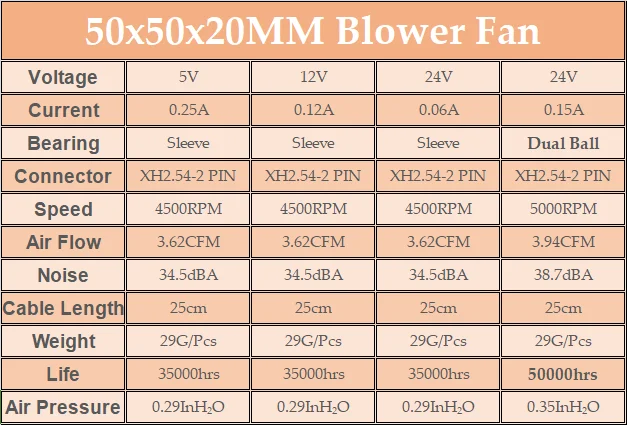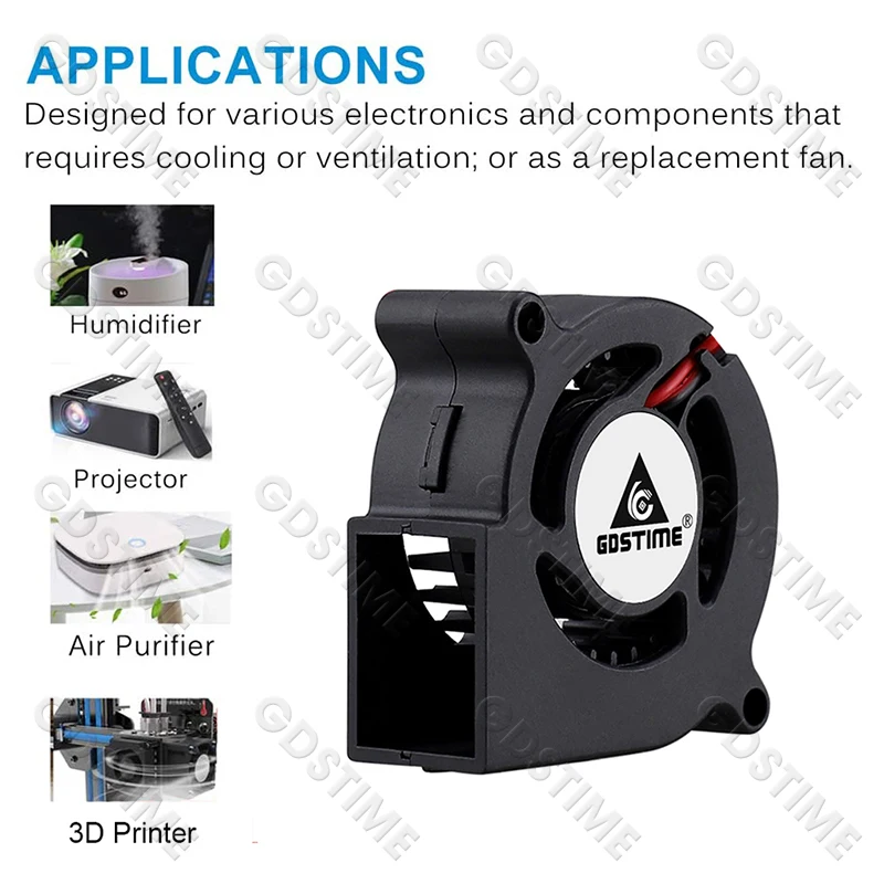 Comprar Gdstime DC 5V 12V 24V 50x50x20mm enfriador de doble bola ventilador Radial de 2 pines 5020 Turbo ventilador 5cm 50mm radiador para refrigeración de impresora 3D