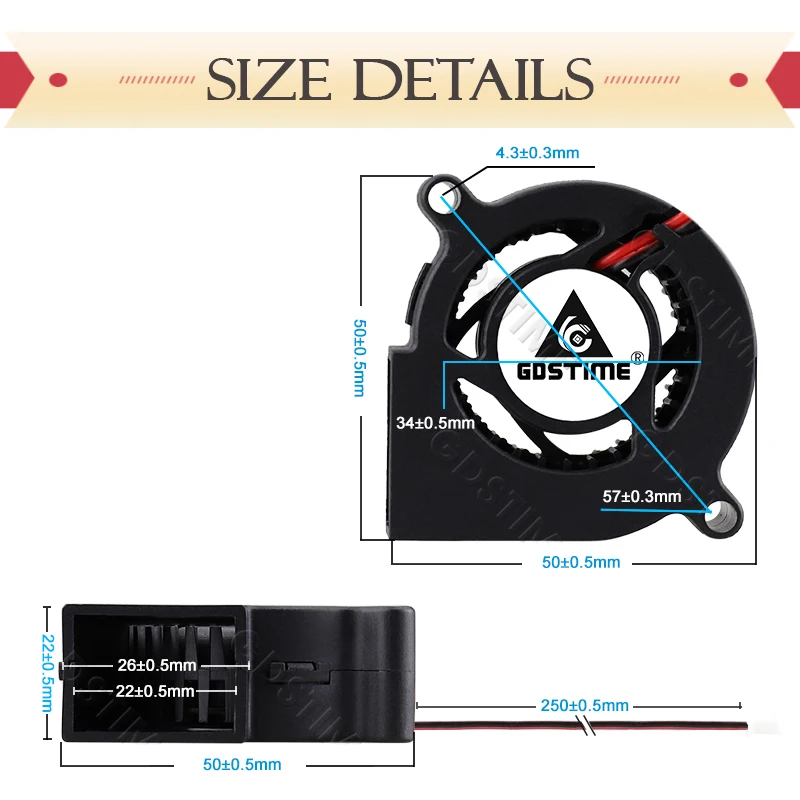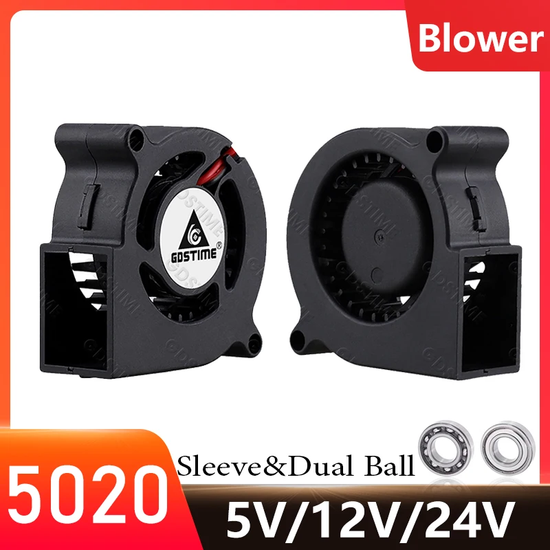Comprar Gdstime DC 5V 12V 24V 50x50x20mm enfriador de doble bola ventilador Radial de 2 pines 5020 Turbo ventilador 5cm 50mm radiador para refrigeración de impresora 3D